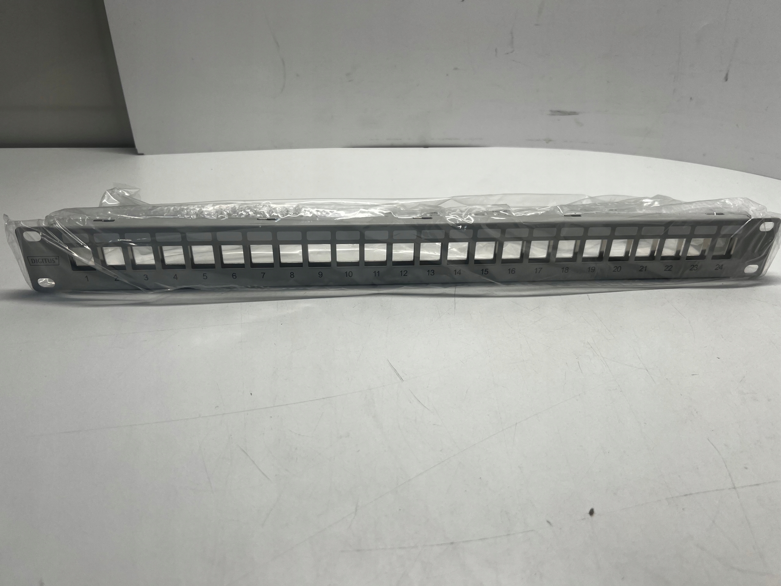 Patch-panel pusty 24-portowy przeznaczony do montażu w szafach rack 19" (483 mm) firmy DIGITUS