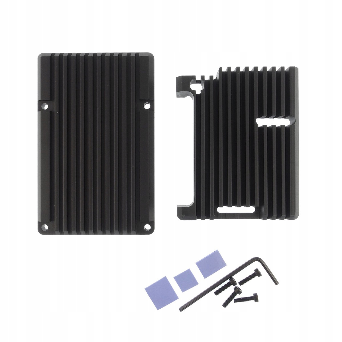 Большой алюминийрадиатор в виде корпуса, закрывающий всю плату. Разработан для миникомпьютера Raspberry Pi 4.модель Б. Обеспечивает свободный доступ ко всем портам и контактам миникомпьютера. Такой большой радиаторобеспечивает пассивное охлаждение миникомпьютера.