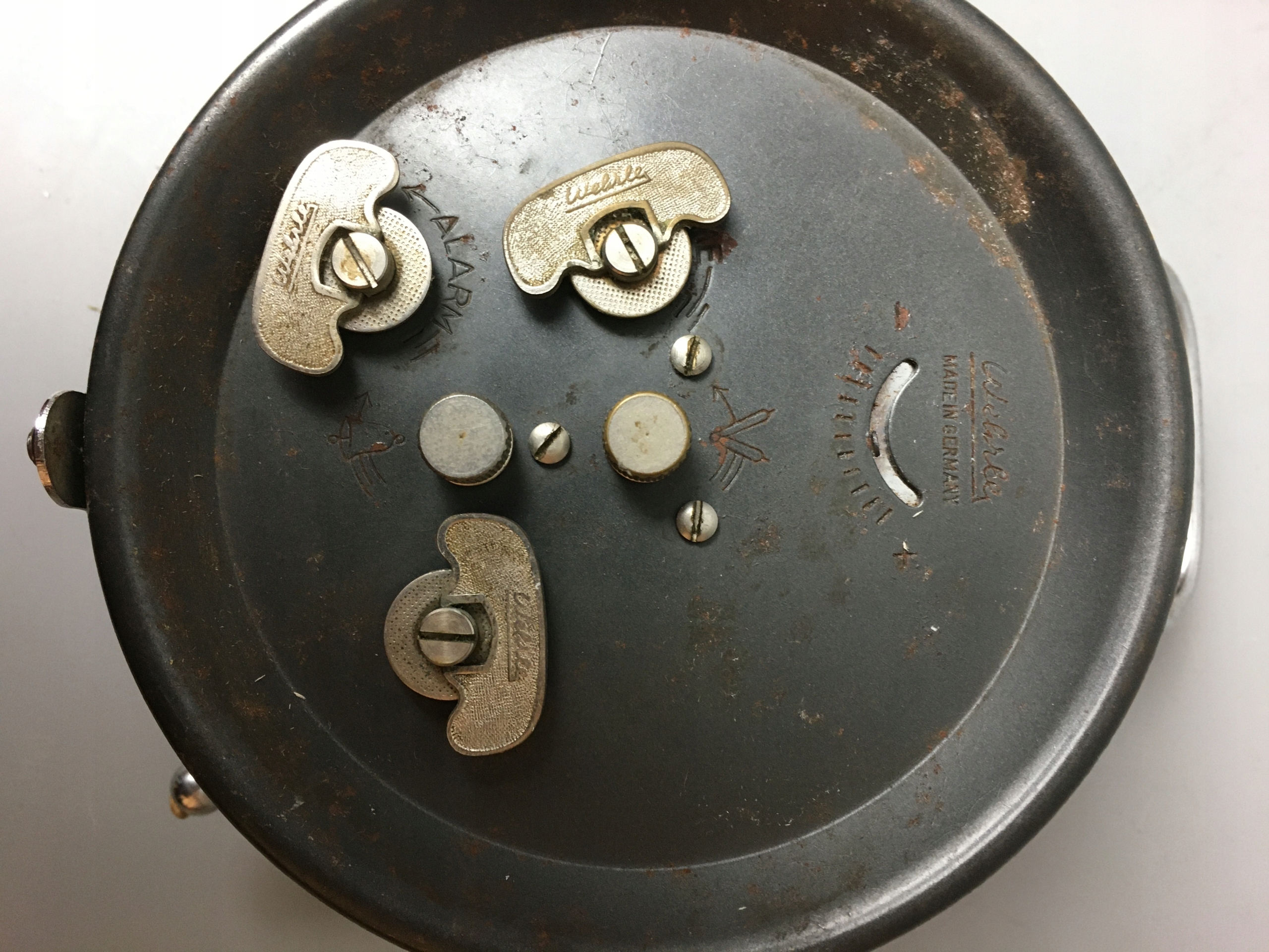 Zegar sprzedaję jako niesprawny gdyż nie nakręca się, jest zablokowany. Alarm można zaś nakręcić bez problemu.