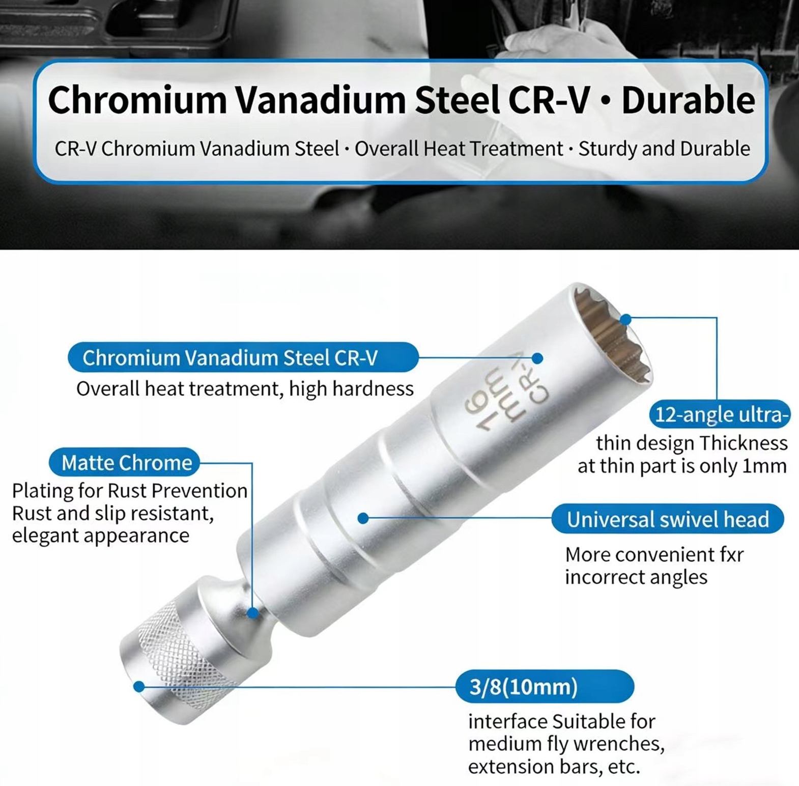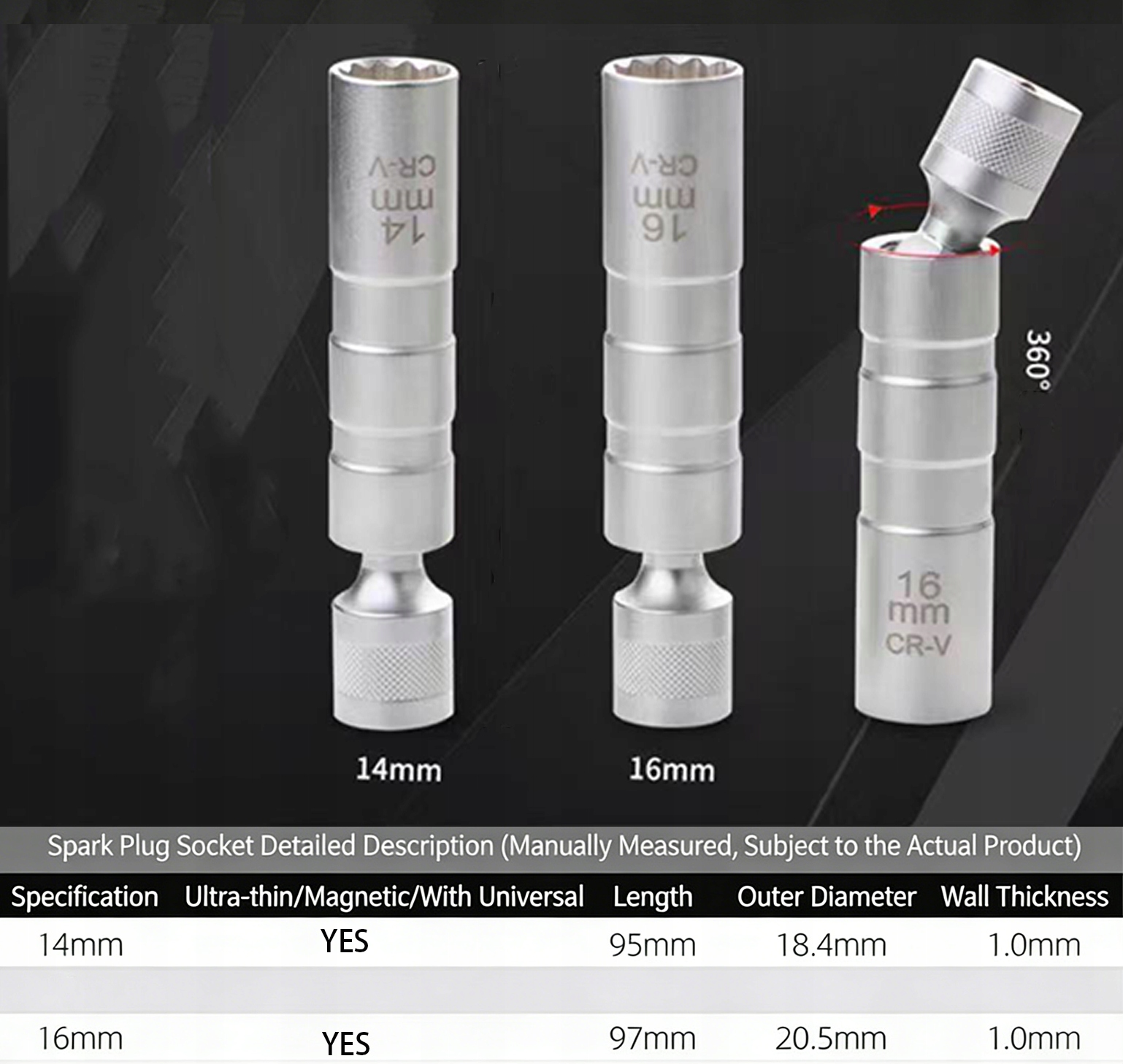 🔧Zestaw kutych gniazd świec zapłonowych ze stali chromowo-wanadowej, cienkościenna konstrukcja magnetyczna 14 mm + 16 mm✨3/8-calowy napęd, 12-punktowe zaangażowanie dla zwiększenia stabilności, elastyczny obrót o 360°, kompatybilny z wieloma modelami BMW i MINI🚗Magnetyczna retencja zapobiega poślizgowi, płynna instalacja/usuwanie – niezbędne narzędzie do konserwacji samochodów!