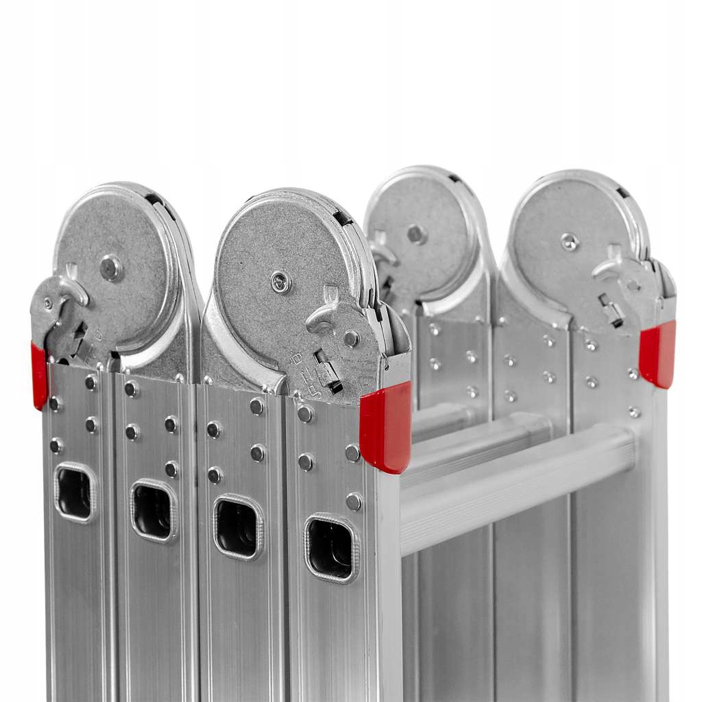 Drabina posiada udźwig do 150 kg, co pozwala na pracę z narzędziami i materiałami oraz stabilność nawet przy dynamicznych ruchach.