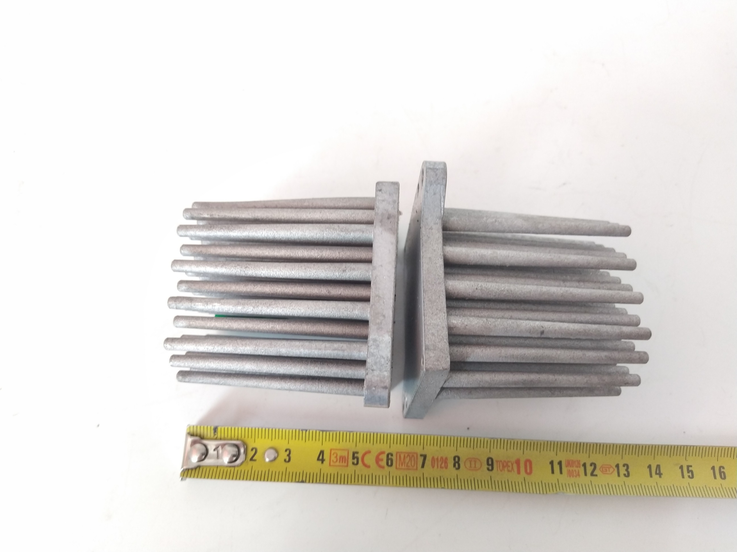 Aluminiowy radiator - do ogniwa Peltiera (współpracował z ogniwami o wymiarach 30x30mm oraz 40x40mm). Radiator jest tak zaprojektowany, że po przyłożeniu radiatora w odbiciu lustrzanym, można je ze sobą skręcić śrubkami (gwint jest w podstawie radiatora), wcześniej umieszczając pomiędzy nimi ogniwo Peltiera (ostatnie dwa zdjęcia)