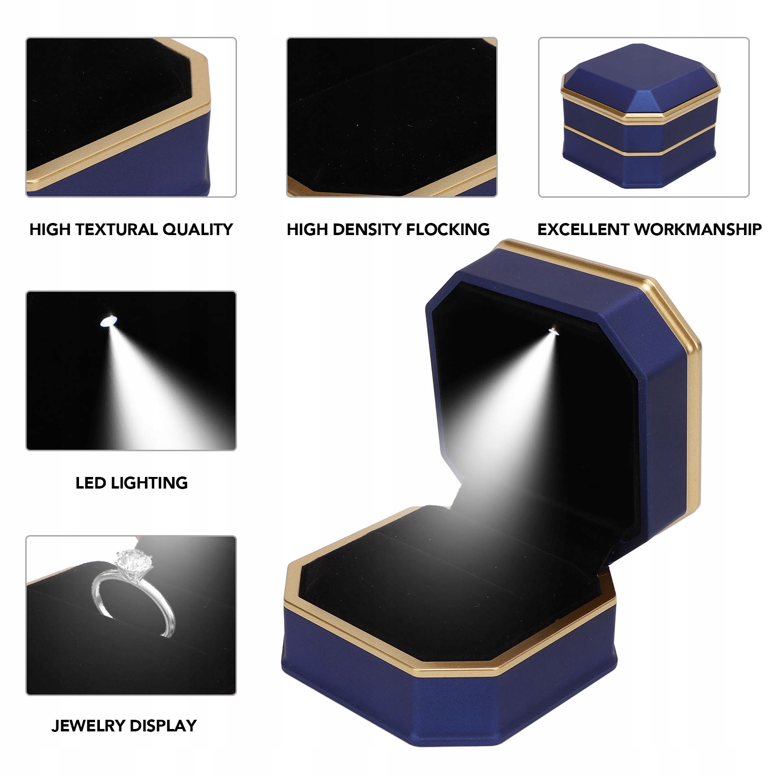 4. Idlny moment na oświadczyny: To pudeko na pierścionek z propozycją jest idlnym wyborem do skadania oświadczeń. Gdy otworzysz pudeko dla ukochanej osoby, świato LED rozświetli pierścionek, przynosząc niezapomnianą niespodziankę. Spraw, aby ten wyjątkowy moment sta się wiecznym wspomnieniem w Twojej historii miosnej.
