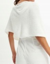Poncho w rozmiarze 44/46 dostępne jest w neutralnym, białym kolorze, idealnym do zestawienia z dowolnym zestawem. Brak wzoru podkreśla jego uniwersalność – możesz go nosić na spacer po mieście, spotkanie z przyjaciółkami czy wieczór filmowy w domu. Dzięki wygodnemu zapięciu w formie wiązania, każdy model można szybko i łatwo dopasować, zapewniając idealne dopasowanie oraz swobodę ruchów.