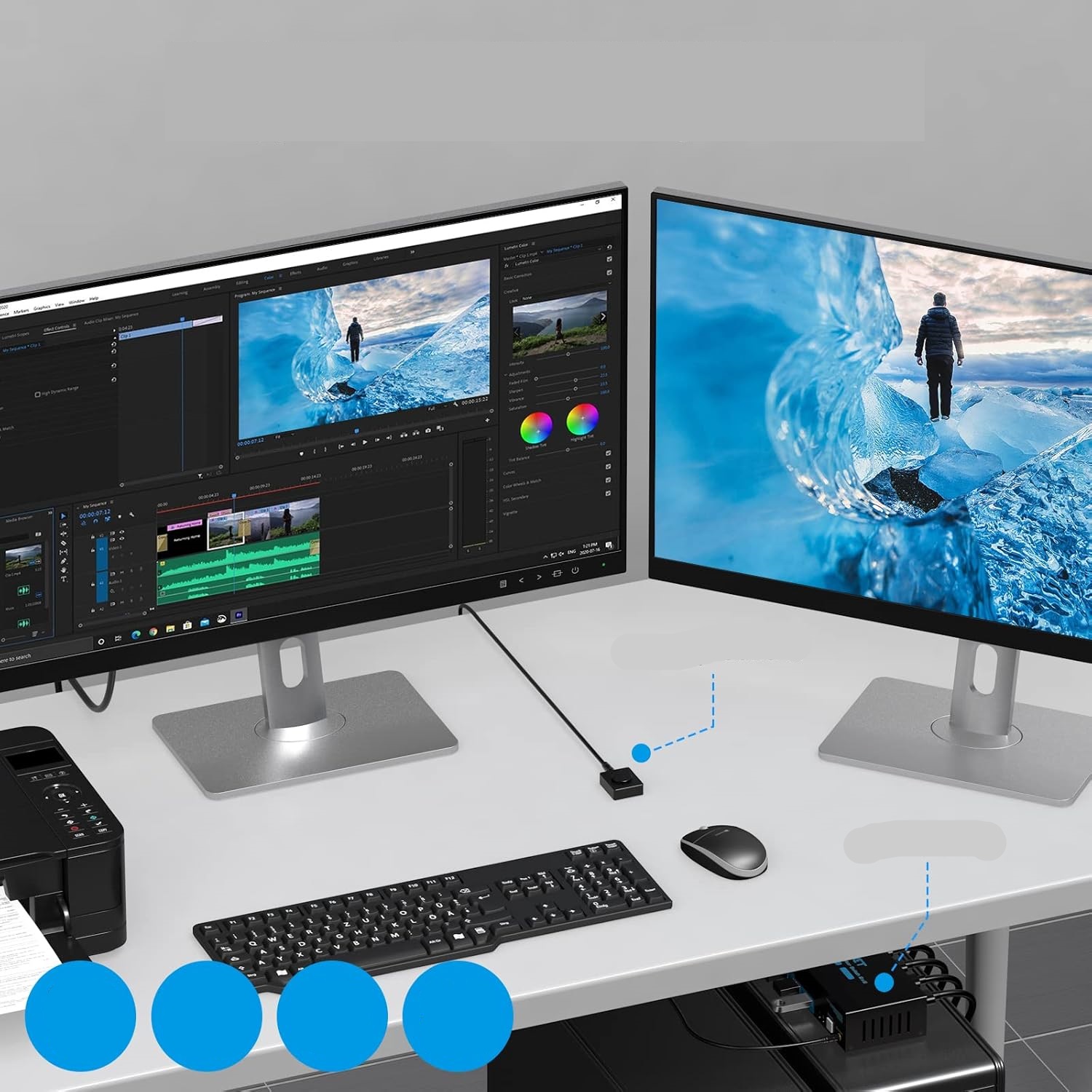 Instalacja i obsługa przełącznika KVM jest niezwykle prosta. Wystarczy podłączyć kable HDMI i USB do odpowiednich portów, a urządzenie jest gotowe do użycia. Nie wymaga instalowania żadnych dodatkowych sterowników ani oprogramowania. Przełączanie między komputerami odbywa się za pomocą jednego przycisku, co jest bardzo wygodne i intuicyjne.