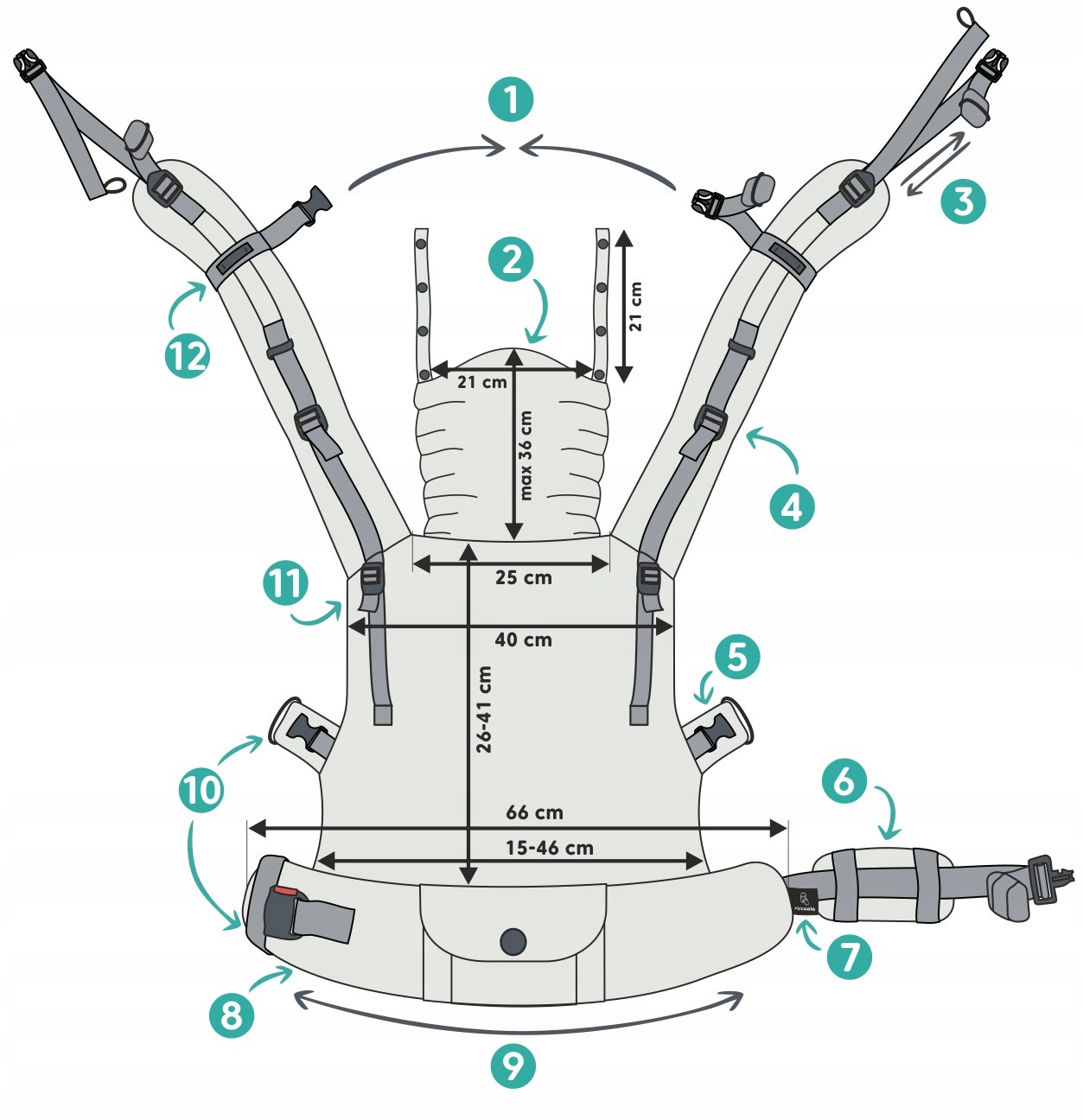 Nosidełko rośnie razem z dzieckiem – dzięki intuicyjnej regulacji panelu zawsze zapewnia ergonomiczną, bezpieczną i naturalną pozycję malucha.