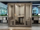 Nowoczesna wygłuszająca kabina akustyczna to absolutny must have w nowoczesnych wnętrzach biur typu open space, urzędach, lotniskach, hotelach, uczelniach. Kabina zapewnia możliwość prowadzenia rozmów telefonicznych lub telekonferencji w komfortowych warunkach w których można skupić się na rozmowie oraz prowadzić ją nie przeszkadzając współpracownikom. Czteroosobowa Kabina akustyczna zapewnia komfortowe odpowiednio wygłuszone miejsce do prowadzenia spotkań biznesowych lub szkoleń. Przeszklone drzwi sprawiają, że kabina wygląda niezwykle lekko i ozdabia wnętrze w którym się znajduje. Komfortowa i praktyczna kabina akustyczna sprawdzi się w nowoczesnym biurze charakteryzującym się innowacyjnością. Kabina została wykonana z wysokogatunkowych surowców zapewniających odpowiednie wygłuszenie. Wewnętrzny design i wykończenie zachęcają do korzystania z tego komfortowego miejsca zawsze gdy zajdzie taka potrzeba.