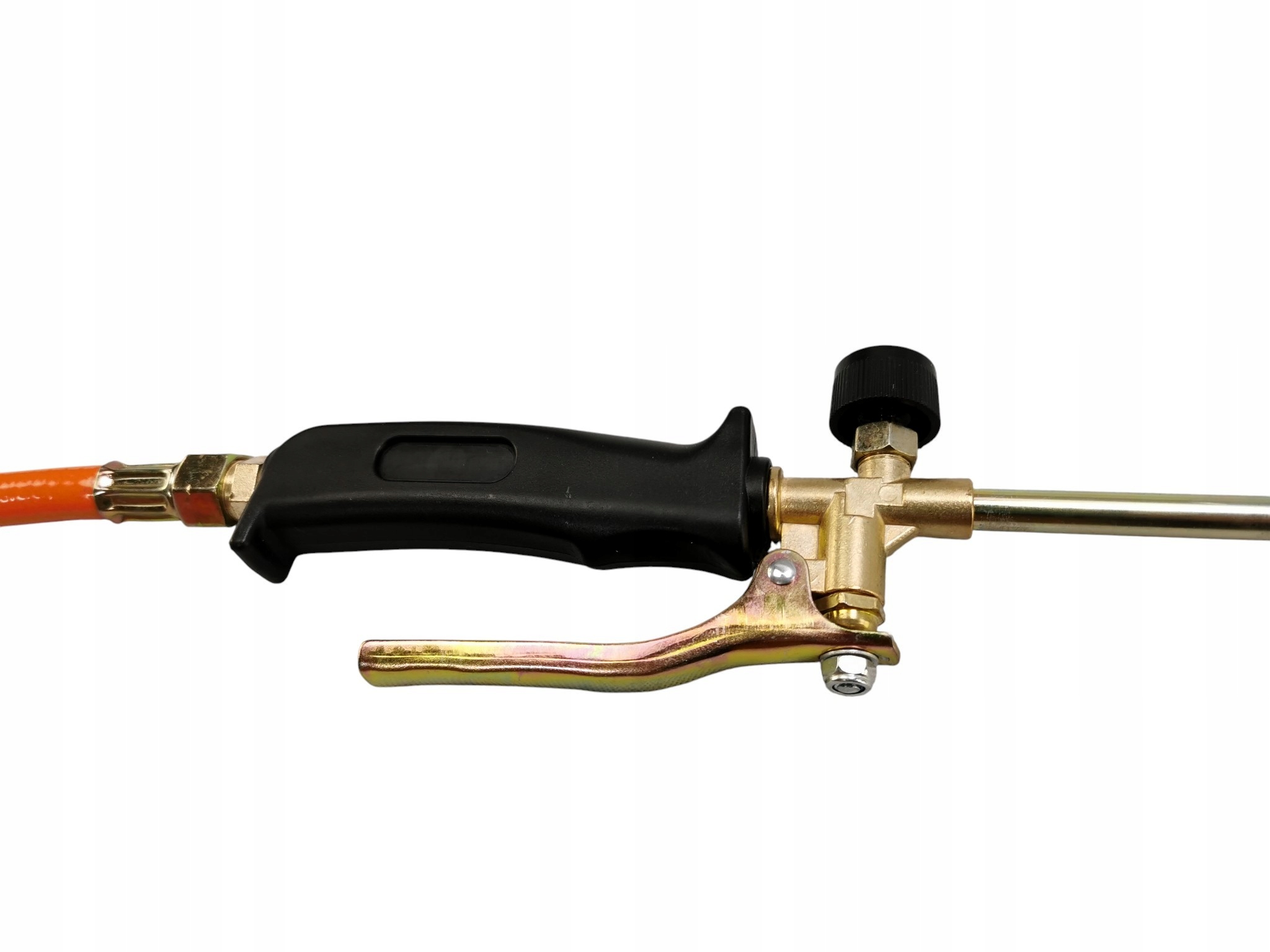 Bardzo łatwy w obsłudze uniwersalny palnik gazowy z wężem na gaz propan-butan. Palniki dekarski jedno-dyszowy z dyfuzorem o średnicy 60 mm oraz wysokiej jakości wężem o długości 5 m, który przyłączany jest bezpośrednio na butlę gazową. Rękojeść z pokrętłem regulującym przepływ gazu. Wytrzymałe tworzywo sztuczne, z którego jest wykonana charakteryzuje się dużą odpornością na uszkodzenia mechaniczne oraz wysokie temperatury. Palnik doskonale sprawdzi się w warsztatach ślusarskich, mechanicznych, spawalniczych, dekarskich itp.