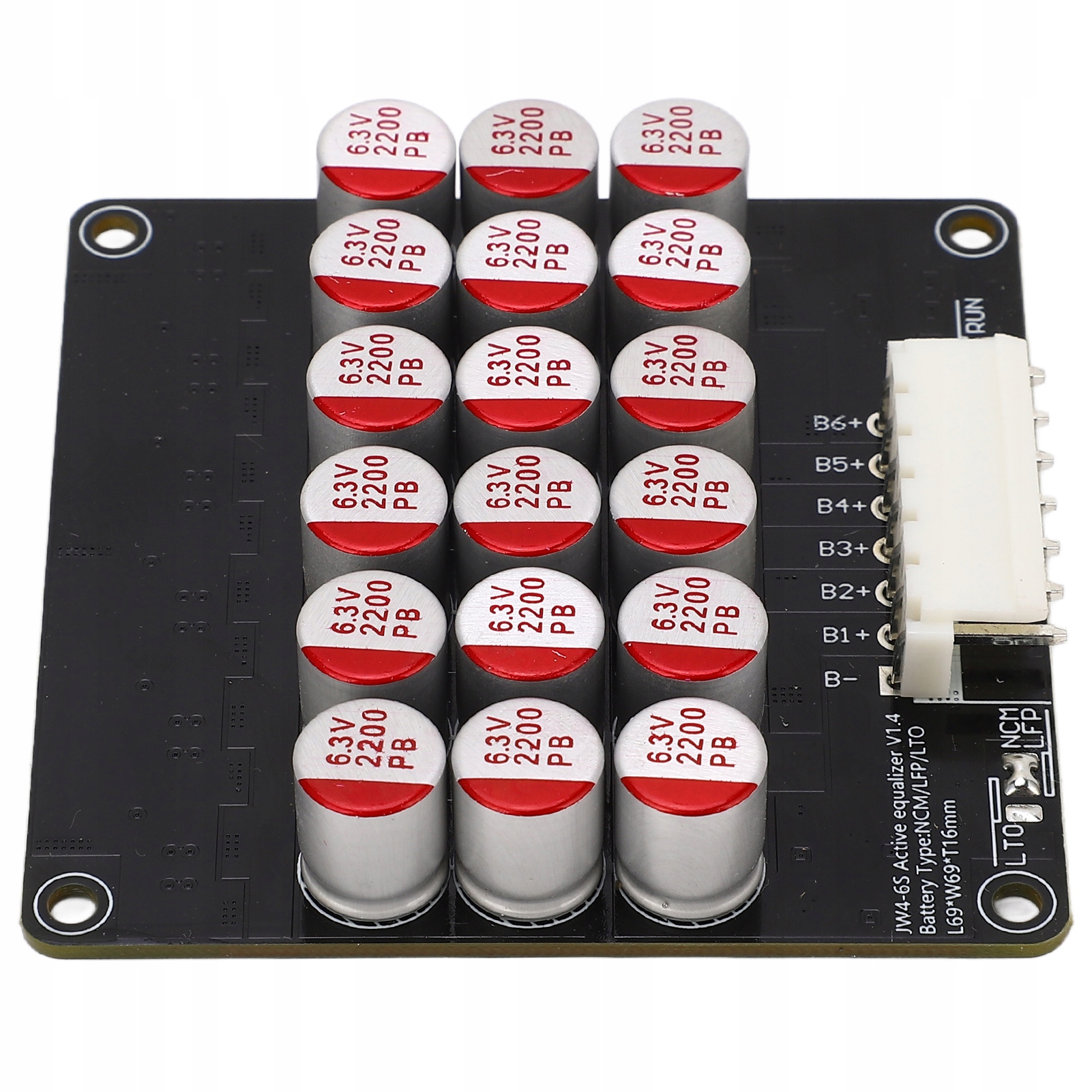 4、Niezawodna praca: Prąd statyczny wynosi około 7 mA, a pojemność akumulatora zaleca się stosować między 30-200 AH na balanser. Akumulatory o dużej pojemności mogą być używane równolegle z wieloma korektorami.