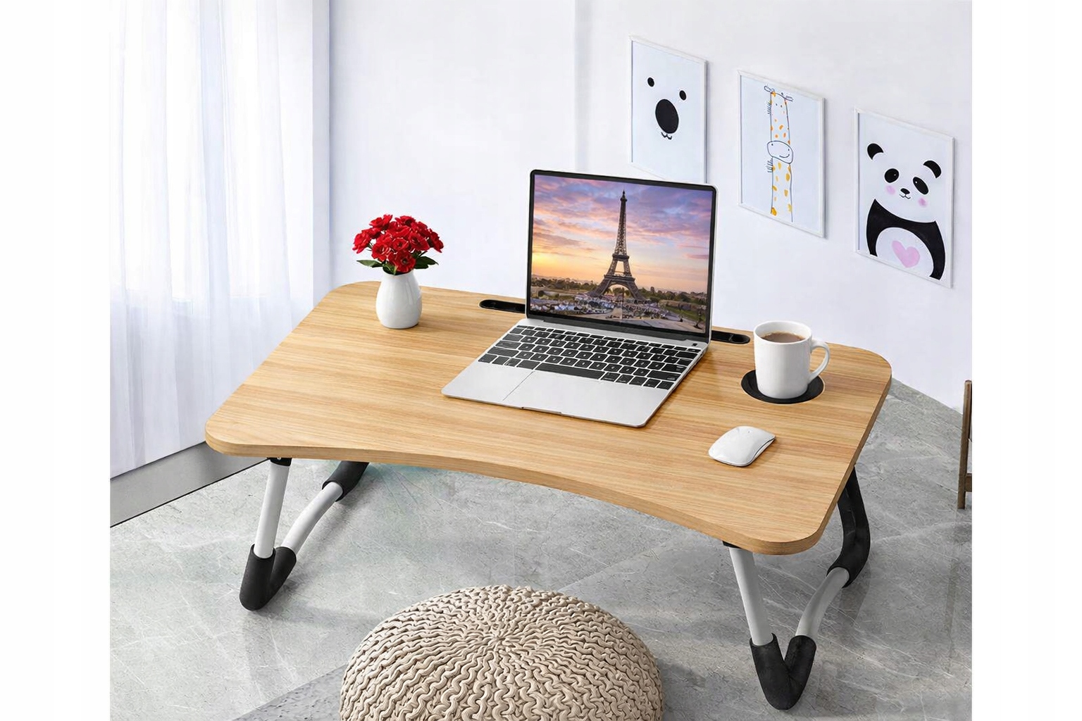 Dzięki praktycznemu stolikowi możesz wygodnie pracować, uczyć się lub jeść w każdym miejscu – na łóżku, kanapie czy fotelu. Idealny pod laptopa, tablet lub jako stolik śniadaniowy.