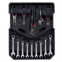 Прецизионные плоскогубцы, гаечные ключи и комбинированные плоскогубцы размещенные в специальных слотах, они облегчают быстрый доступ к инструментам. Каждый элемент имеет свое место, что ускоряет работу и повышает удобство при ремонте и монтаже.