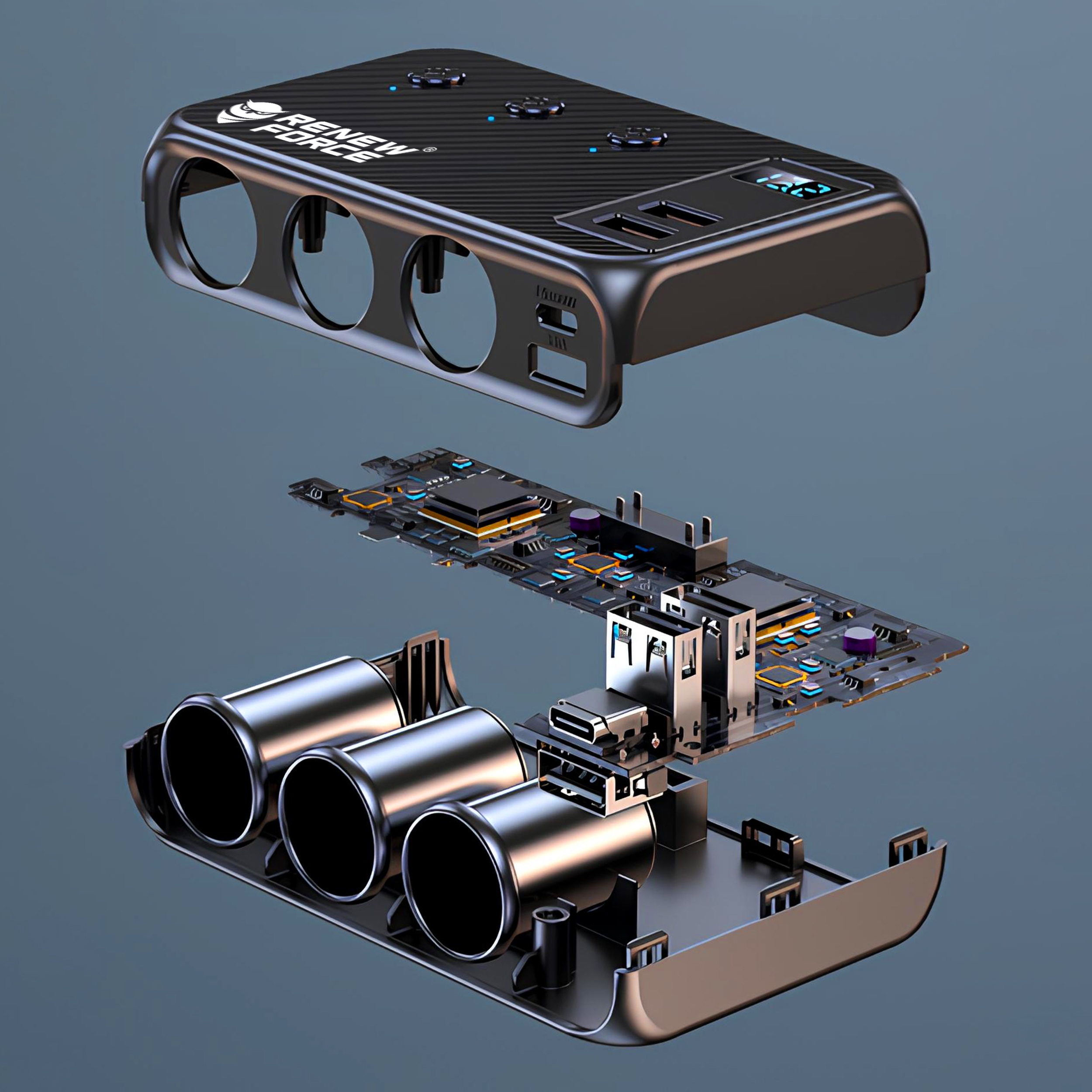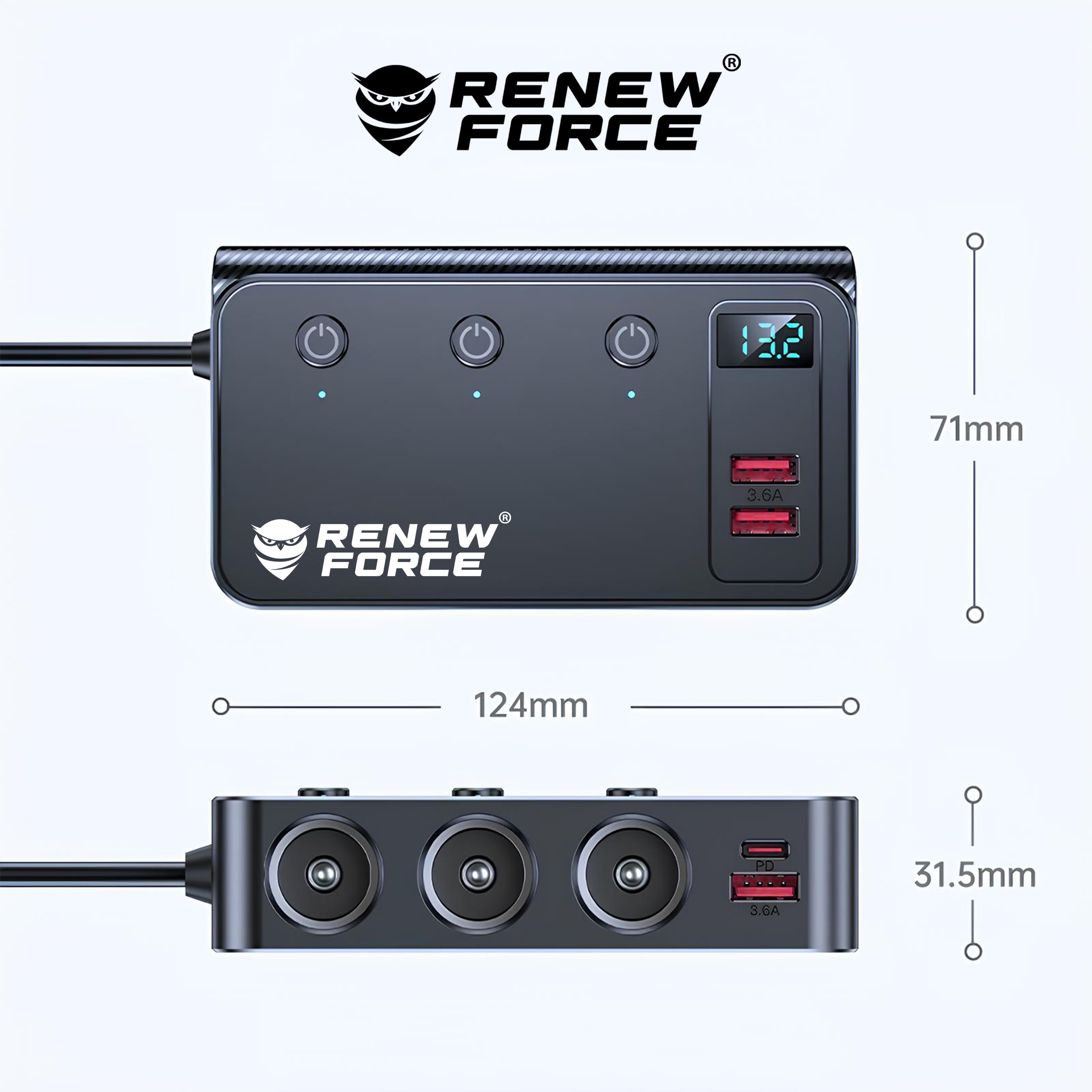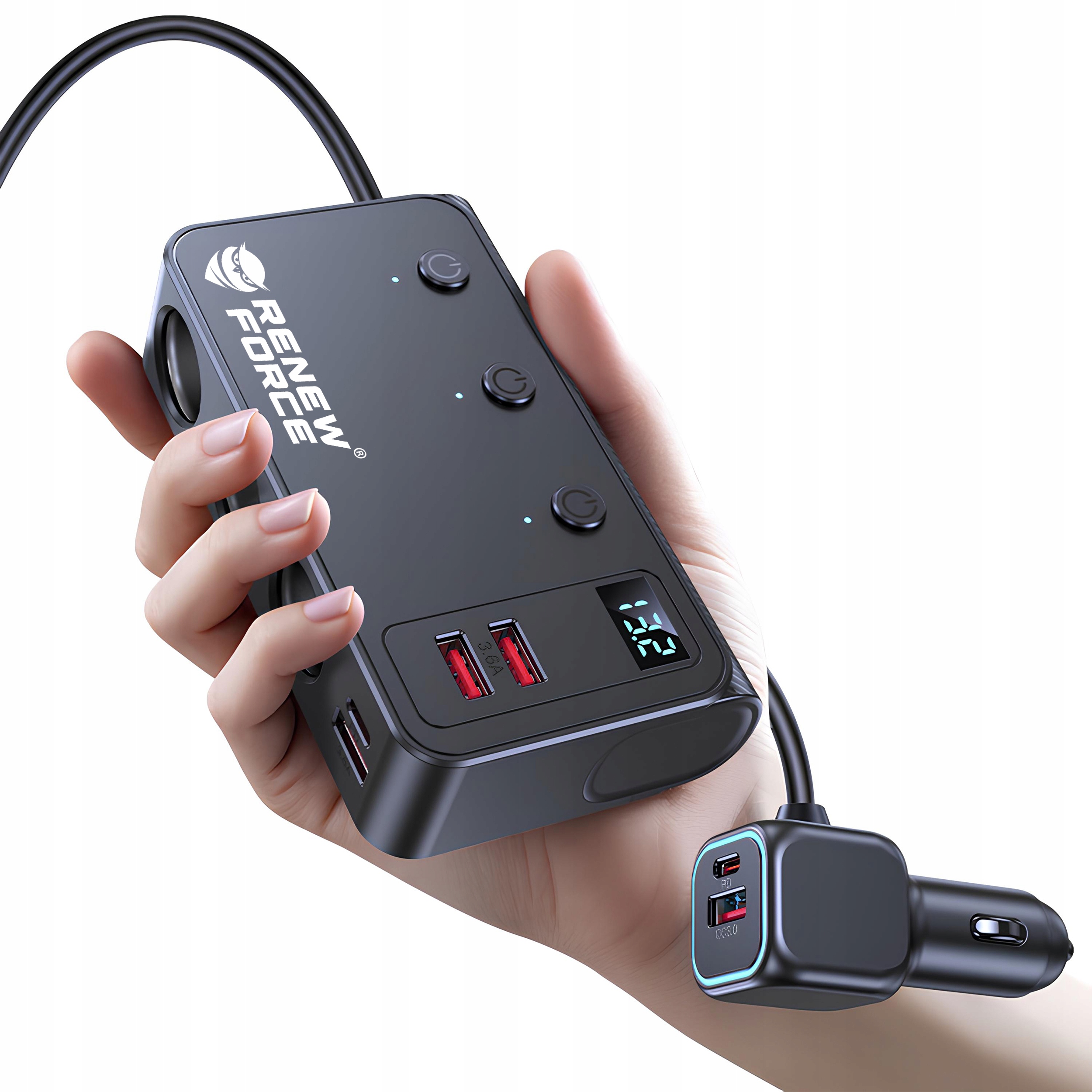 Rozdzielacz został zaprojektowany tak, aby korzystanie z niego było intuicyjne i bezproblemowe. Uchwyt stabilizujący pozwala zamocować urządzenie w wygodnym miejscu, a czytelny wyświetlacz LED daje natychmiastowy podgląd parametrów pracy instalacji samochodowej. Idealny zarówno na krótkie przejazdy, jak i długie trasy.