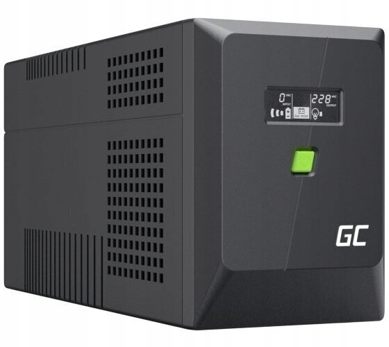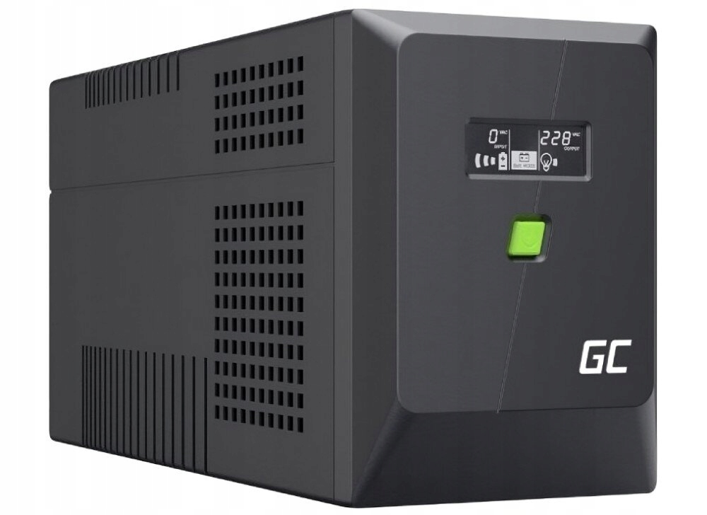 Na froncie obudowy znajduje się wyświetlacz LCD, który w czytelny sposób prezentuje ważne informacje – napięcie wejściowe i wyjściowe, obciążenie, stan baterii czy tryb pracy. Producent zadbał o komfort użytkowania, ograniczając jasność ekranu, by nie rozpraszał w ciemniejszych pomieszczeniach. Dodatkowo zasilacz współpracuje z aplikacją GC UPS App, pozwalając na zdalne monitorowanie parametrów i zarządzanie urządzeniem z poziomu komputera.