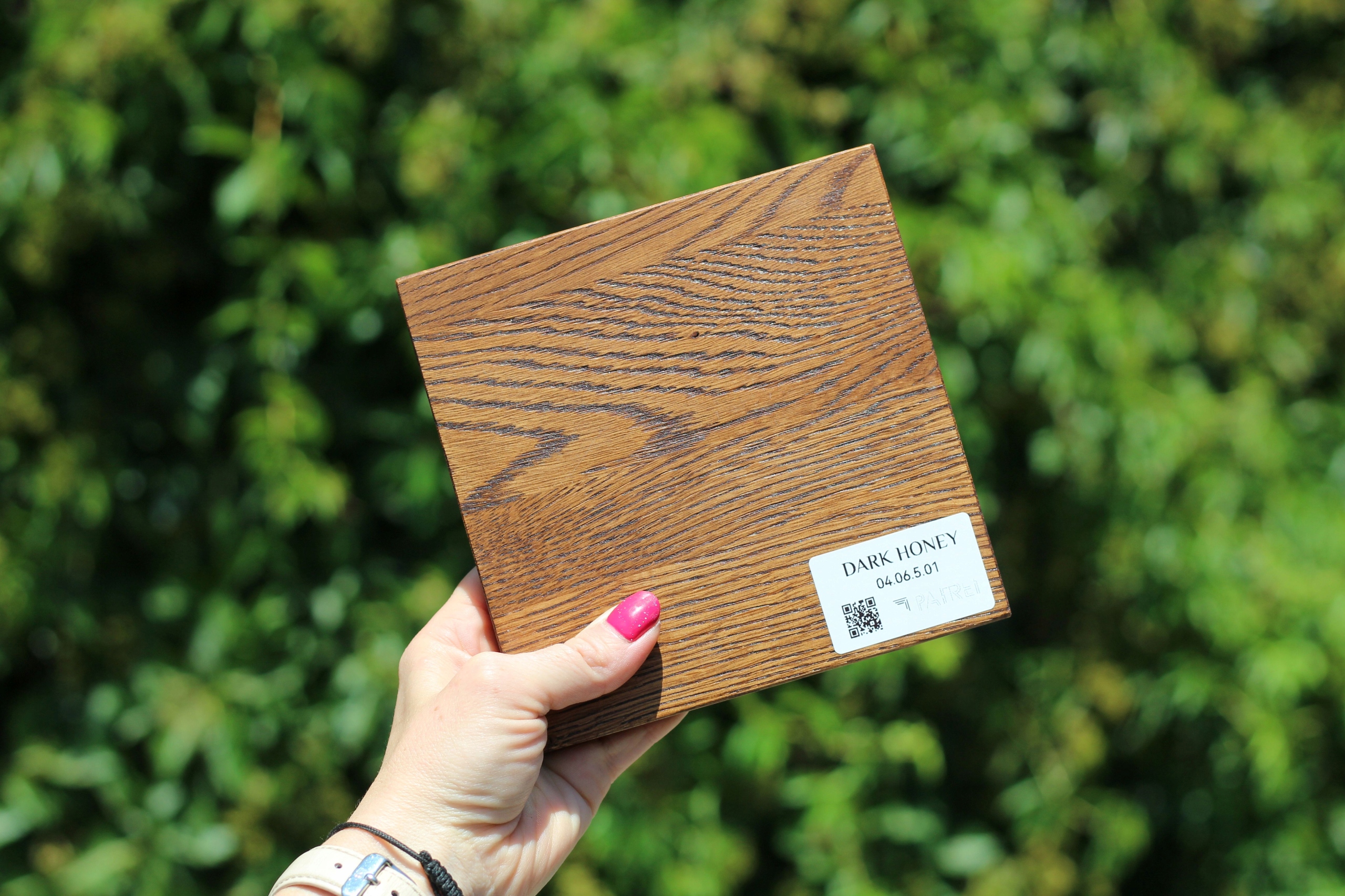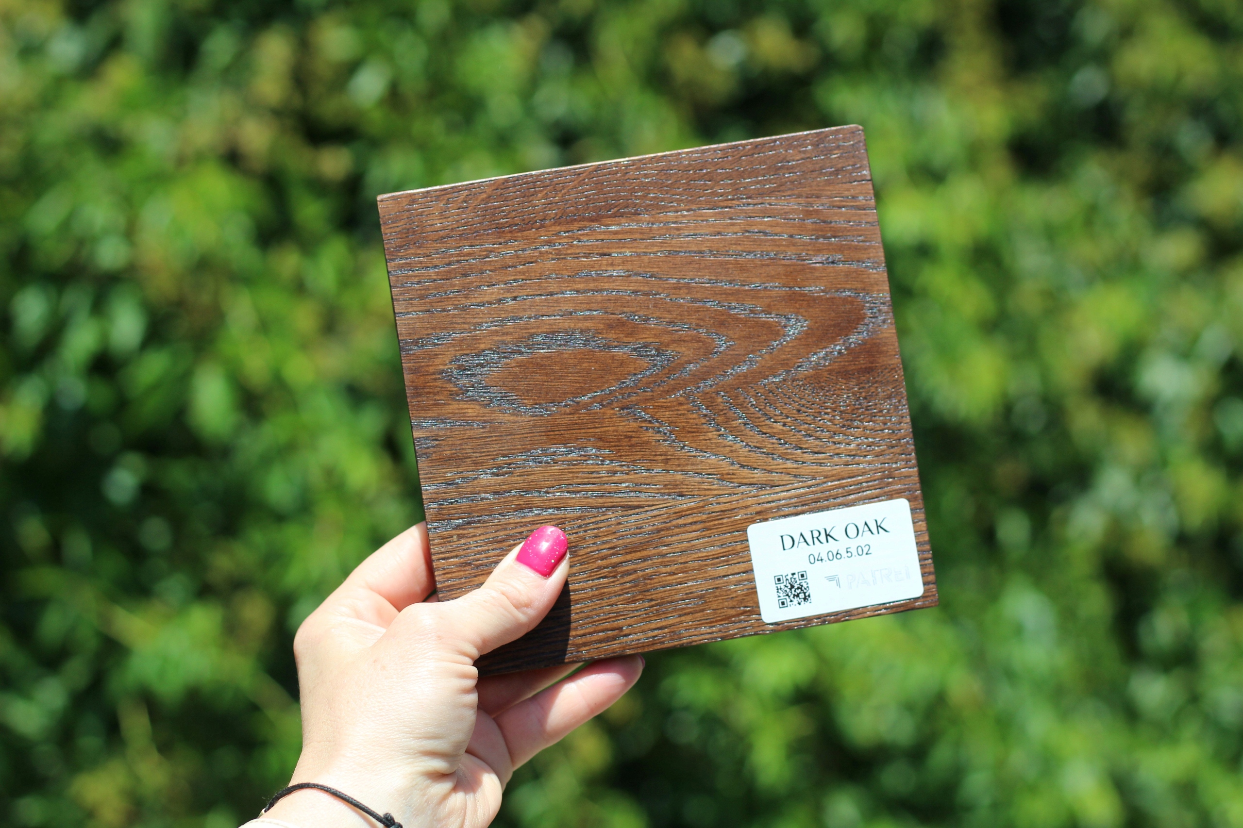 Każda płytka ma format 10×10 cm i została wykonana z fornirowanej sklejki dębowej - to próbki koloru, nie próbki materiału końcowego - dzięki czemu zobaczysz, jak wybarwienie prezentuje się na żywo.