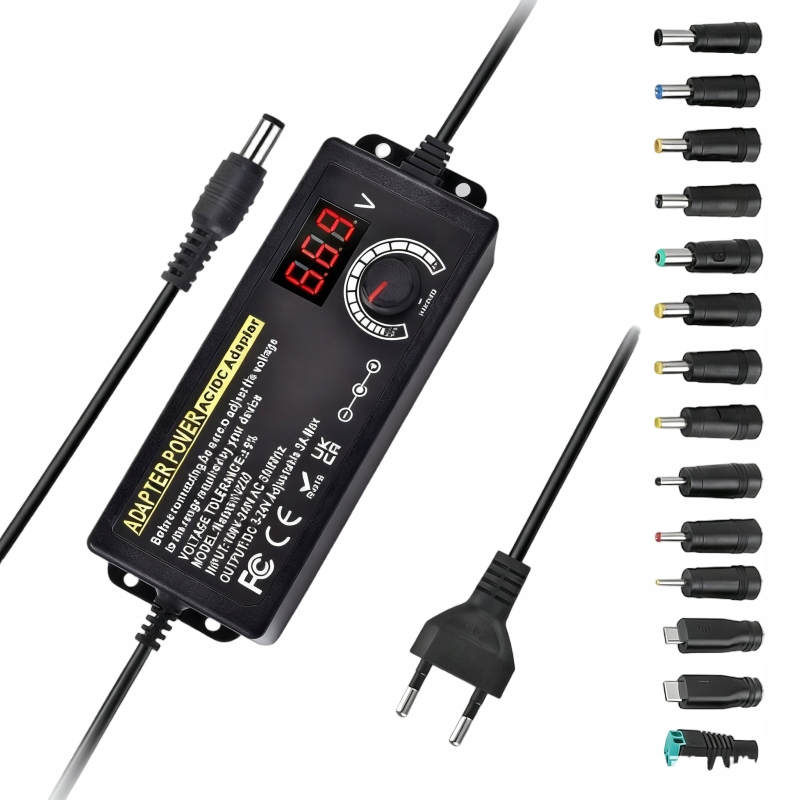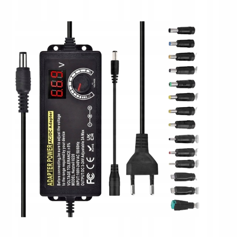 Wejście:AC 100 ~ 240 V, 50/60 Hz, regulowane napięcie wyjściowe 3 V ~ 24 V DC. Maksymalna moc 3 A, 72 W;