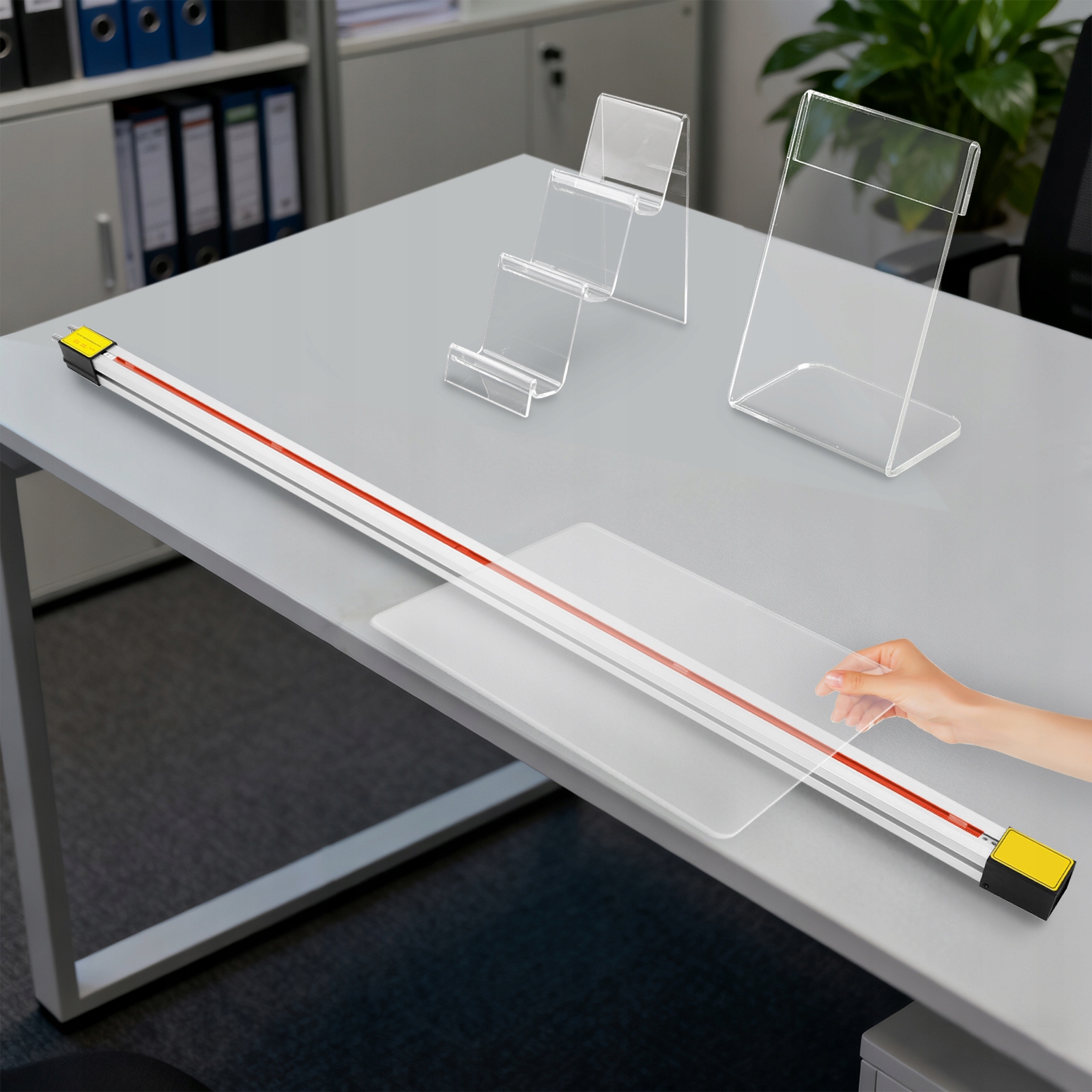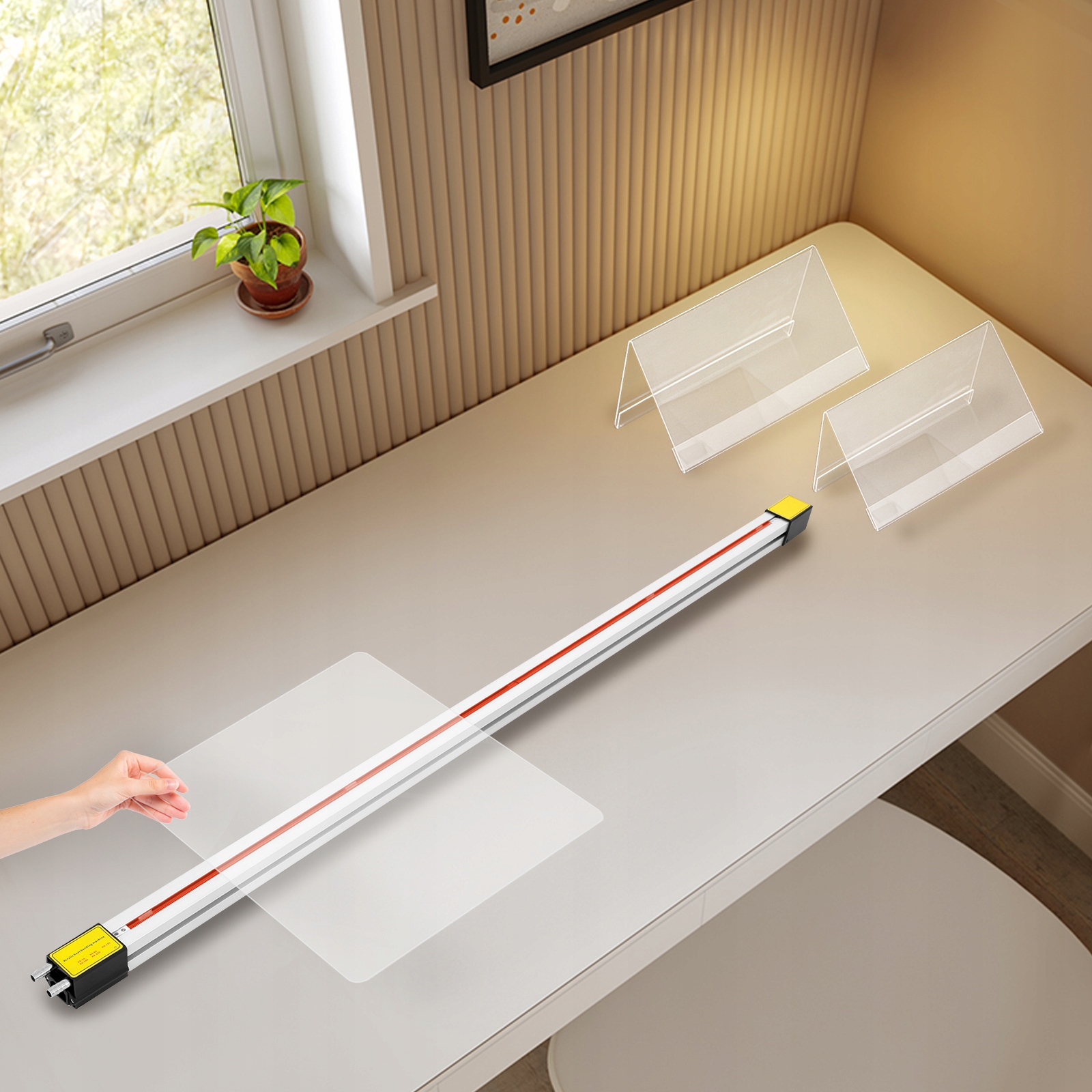 Pracuj w parze: Jeśli grubość arkusza akrylowego jest większa niż 6 mm, możesz użyć dwóch grzejników (w zestawie znajduje się tylko jeden), aby jednocześnie podgrzać górną i dolną część arkusza, lub musisz wyciąć szczelinę na arkuszu do podgrzania, co jest wygodne dla Twojego użytkowania.