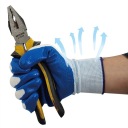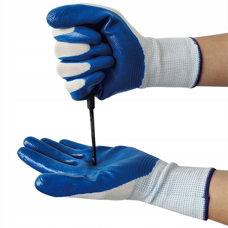 Rękawice ochronne wykonane z dzianiny poliestrowej, zaprojektowane z myślą o komforcie i bezpieczeństwie podczas codziennych prac. W części chwytnej zastosowano powłokę lateksowo-nitrylową w kolorze niebieskim, która zapewnia pewny chwyt, dobrą kontrolę narzędzi oraz ogranicza wnikanie brudu.