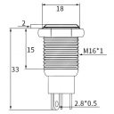 Metalowy przycisk bistabilny (16 mm) z zielonym podświetleniem LED. Wandaloodporny, wodoodporny (IP65), z nakrętką i uszczelką w zestawie.