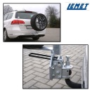 Откройте для себя багажник на запасное колесо марки Lemet — идеальное решение, которое позволит перевозить запасное колесо без загрязнения багажника. Держатель он устанавливается на буксирный крюк и имеет функцию наклона, обеспечивая полный доступ к пространству багаж в машине.