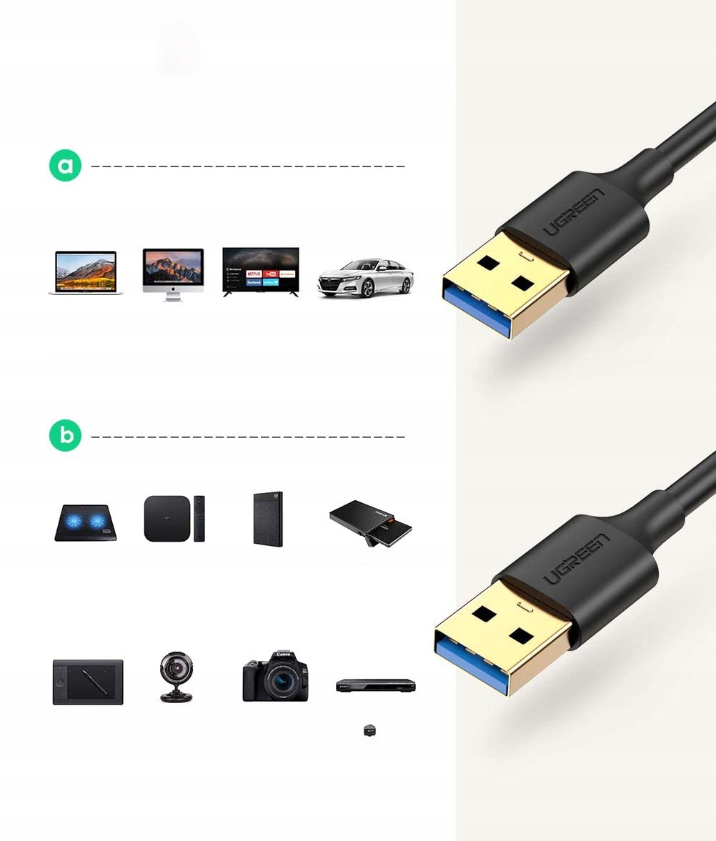 Dzięki kablowi Ugreen US128 możesz połączyć różnorodne urządzenia bez konieczności korzystania z kilku kabli. Możesz nim połączyć wiele urządzeń, takich jak laptop, komputer, telewizor, dysk twardy, kamerę internetową, aparat fotograficzny, odtwarzacz DVD. Lista kompatybilnych urządzeń jest naprawdę długa! A to za sprawą bardzo uniwersalnego złącza USB-A. Uwaga: nie nadaje się do wymiany danych między dwoma komputerami.