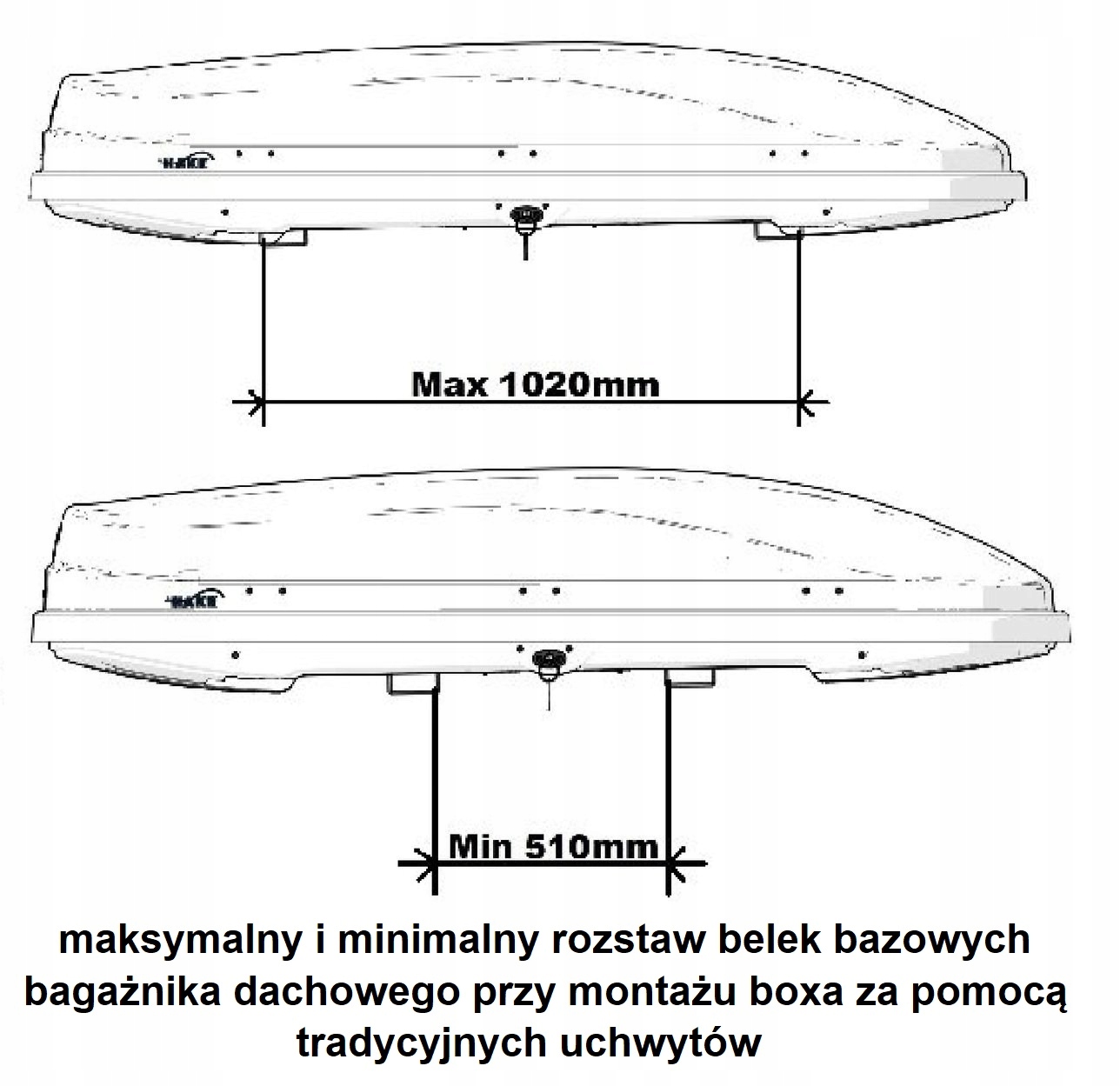 Jako opcja jest oferowany zestaw 4 uchwytów do szybkiego montażu boksa na belkach bazowych dowolnej szerokości, sprzedawane osobno na innej naszej aukcji Allegro. Patrz foto