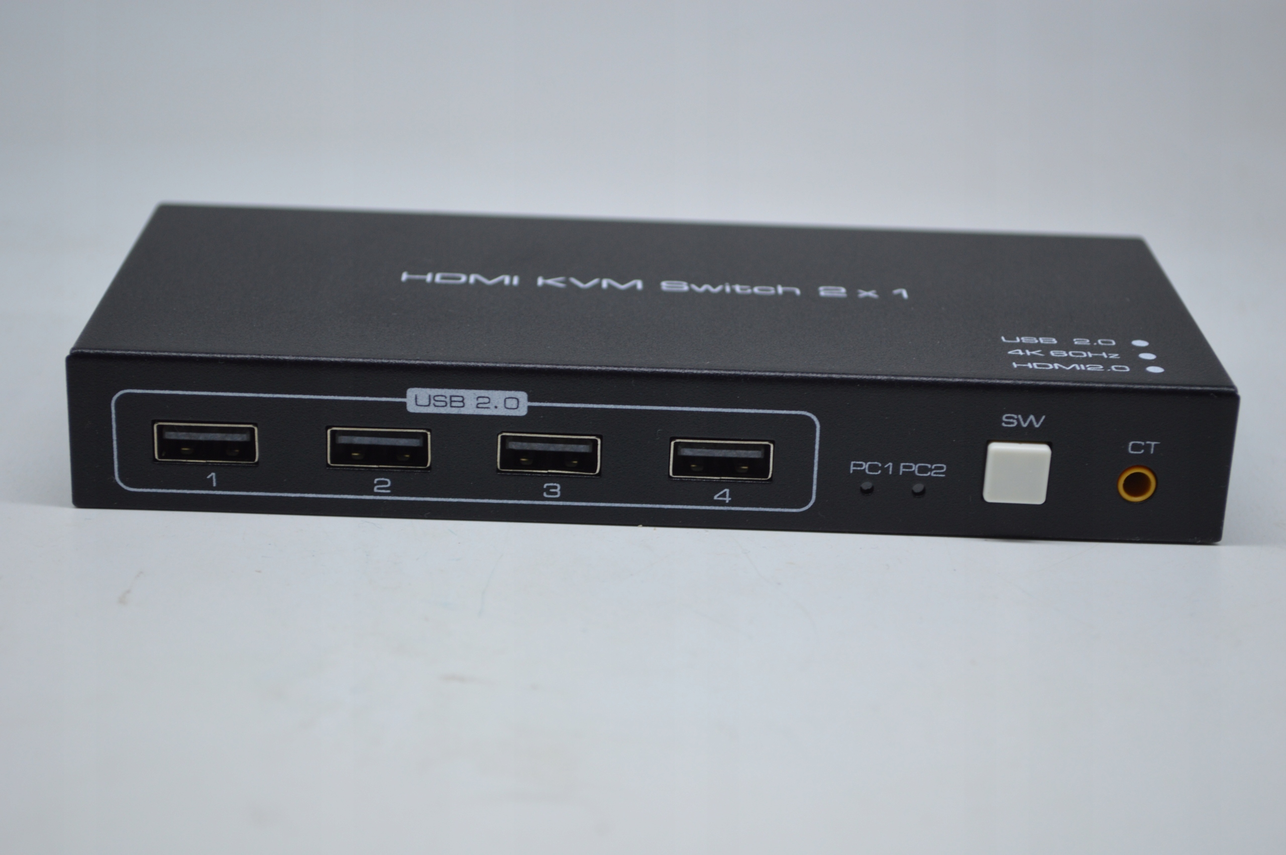 Przełącznik KVM HDMI 2-portowy przełącznik USB z 4 koncentratorami USB 2.0, 2 wejściami i 1 wyjściem, adapterem HDMI USB, przełącznikiem 4Kx2K 60Hz, udostępnianiem urządzenia USB, drukarką, skanerem, klawiaturą i myszą.