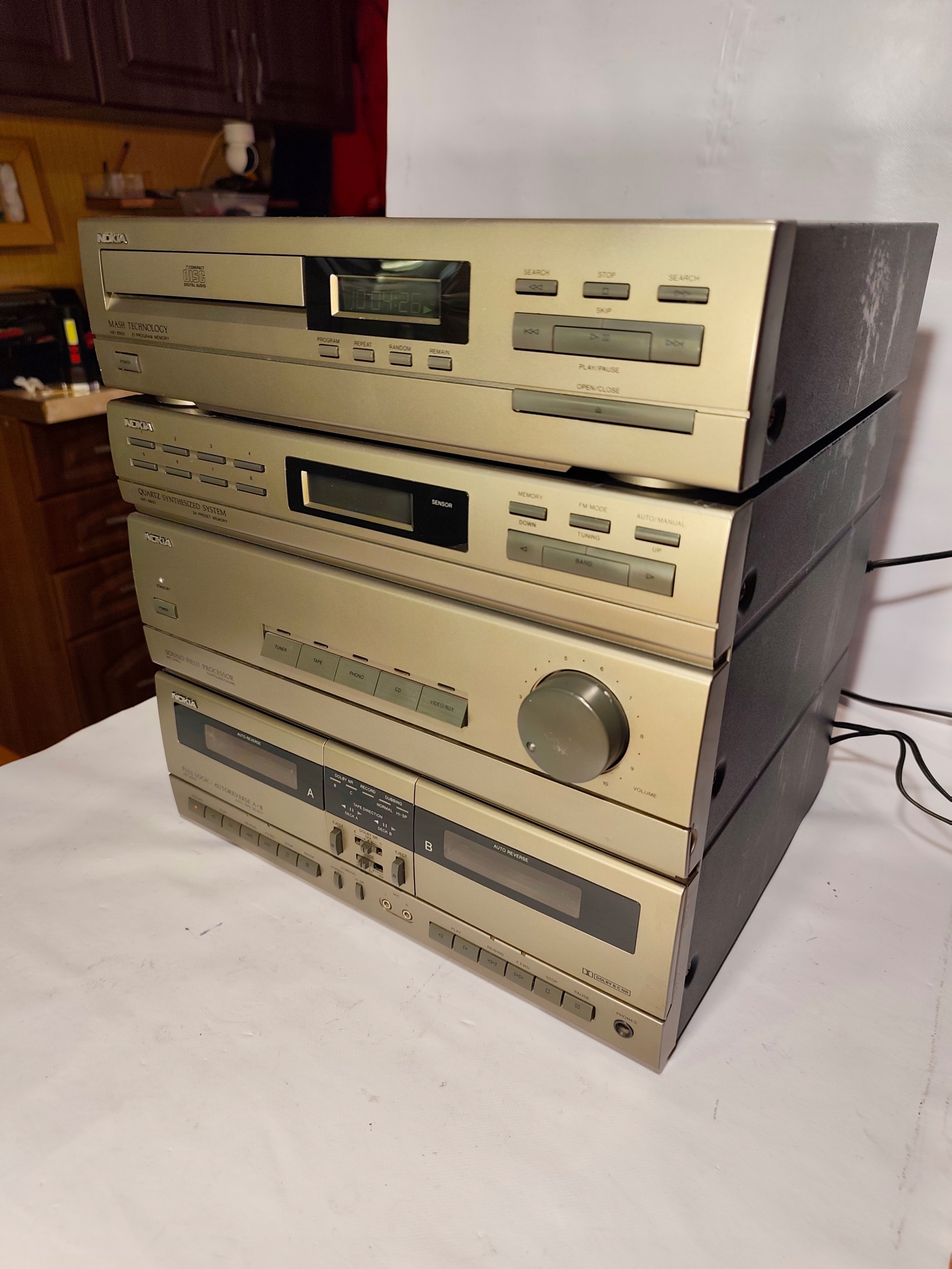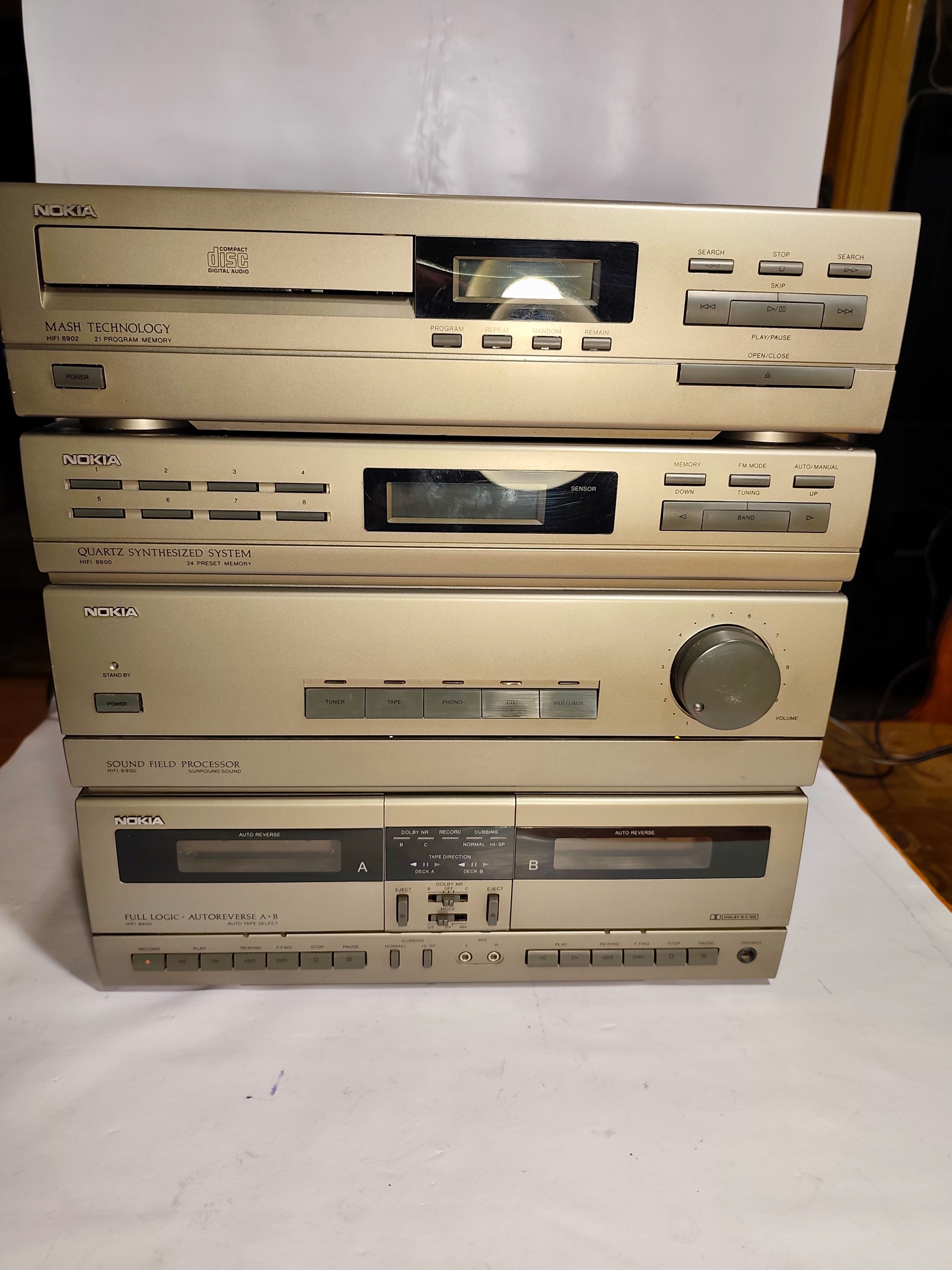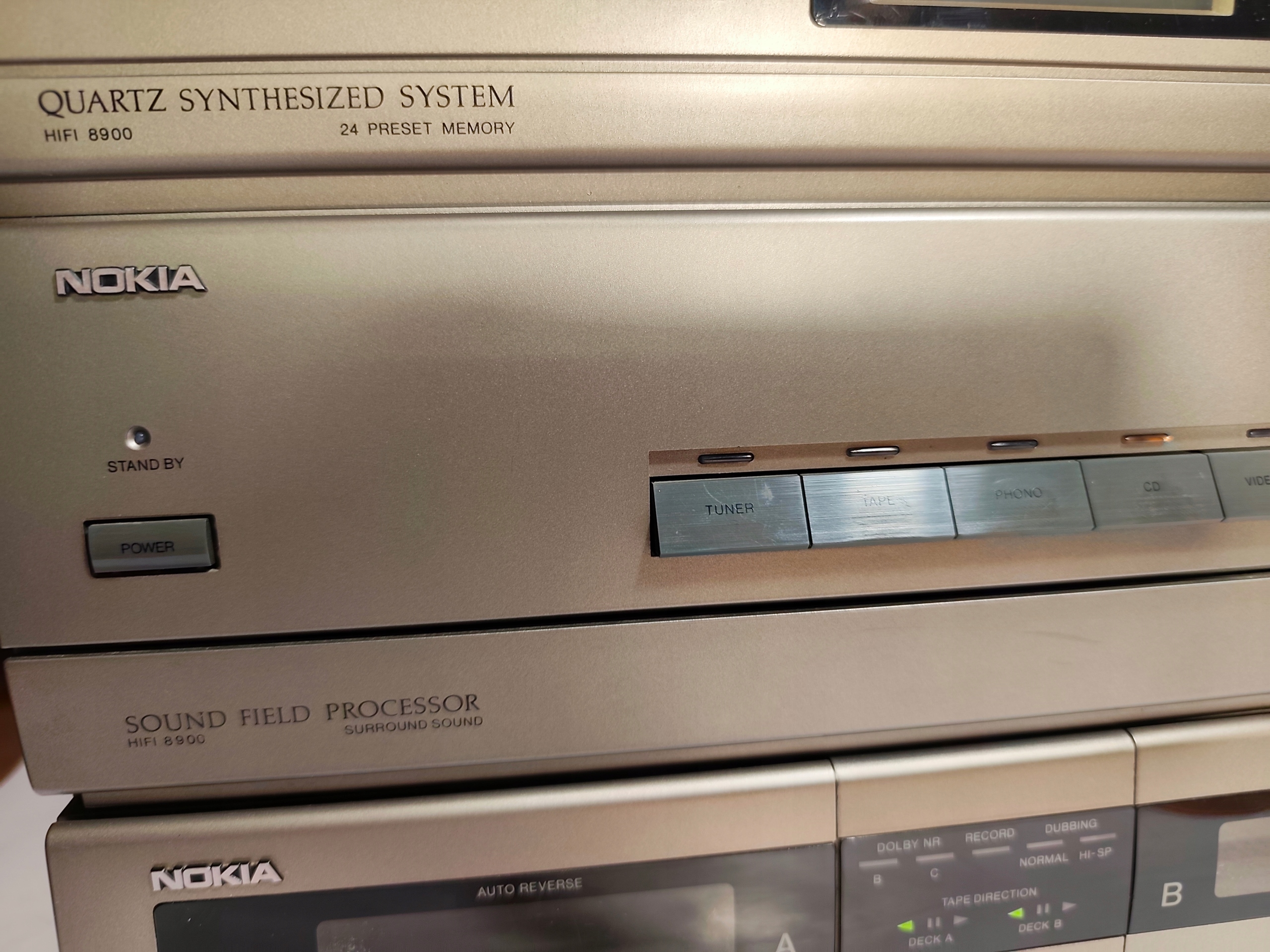 Pierwsza część to wzmacniacz, tuner radiowy i magnetofon kasetowy zespolone razem ,,NOKIA HI-FI 8900,,.