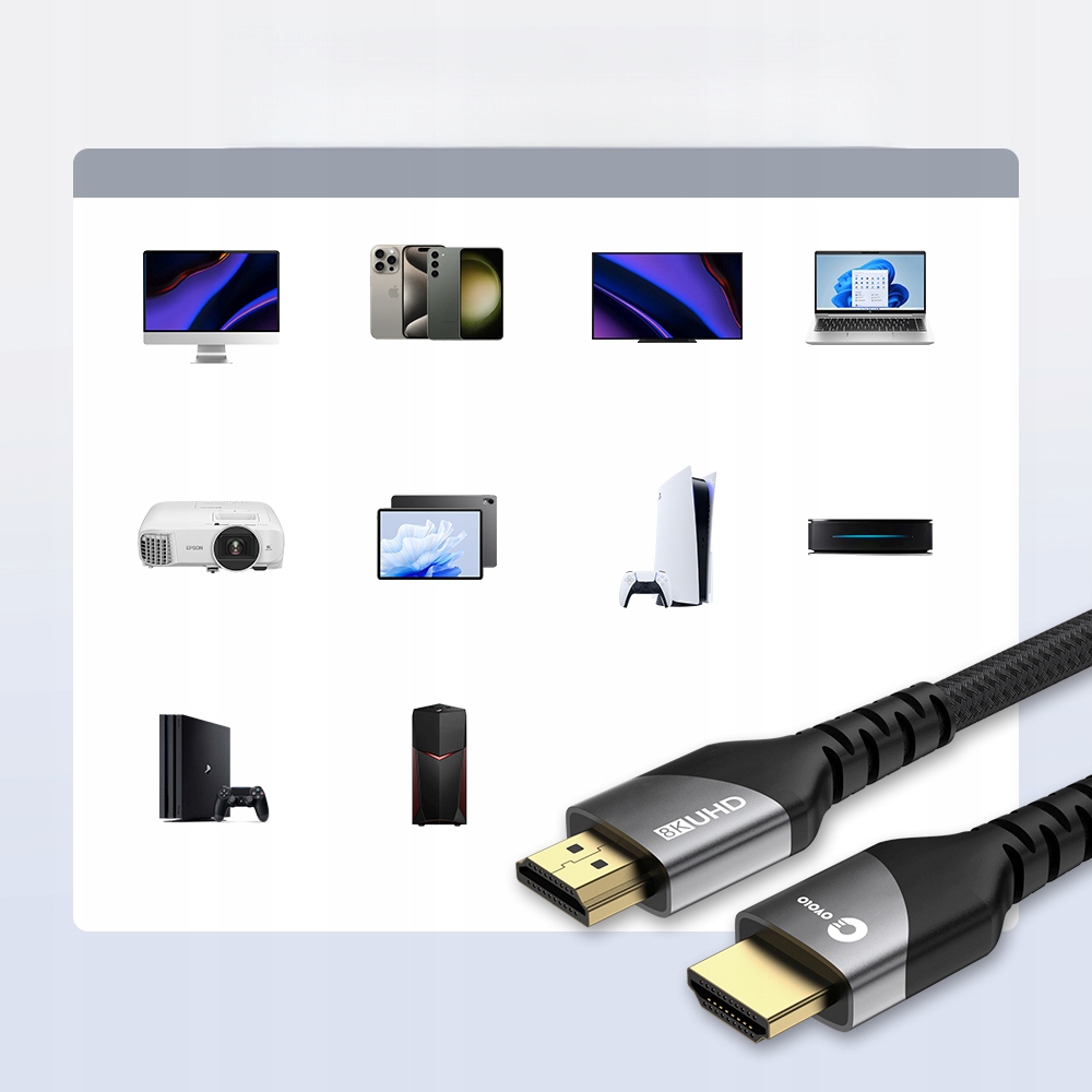 Kabel wspiera standard HDMI 2.1 Ultra High Speed i jest w pełni kompatybilny wstecznie z wcześniejszymi wersjami HDMI.