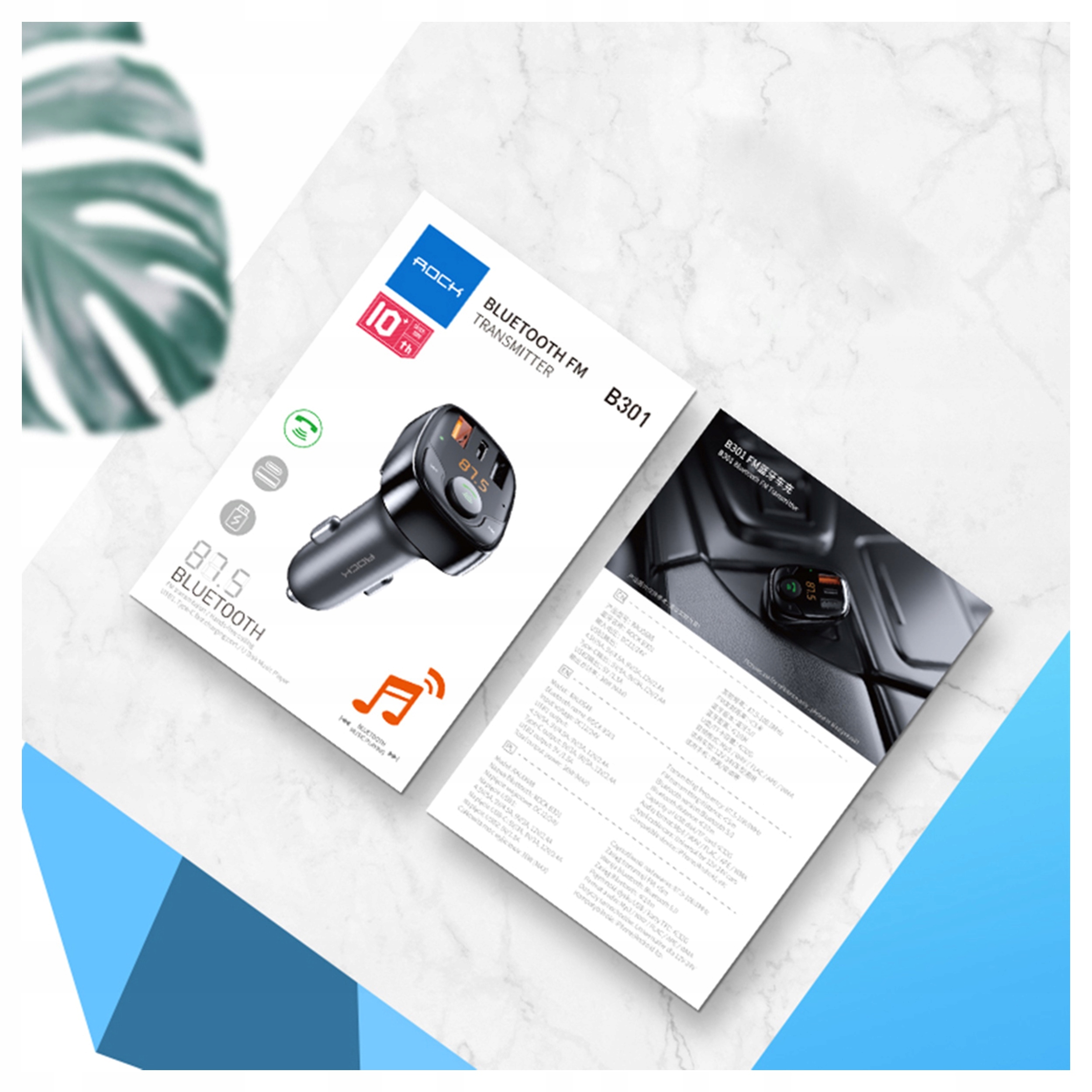 Transmiter łączy się ze smartfonem przez Bluetooth 5.0 - stabilnie, bez przycięć. Dźwięk wysyła do radia przez FM 87.5-108.0 MHz.