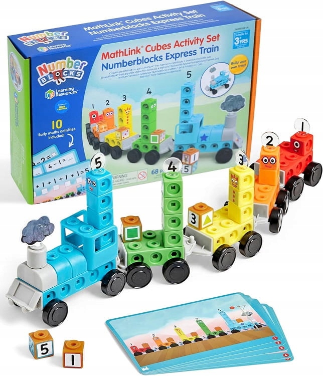 Zestaw do nauki liczenia Number Blocks z pociągiem aktywności składa się z 68 elementów i jest dedykowany dzieciom powyzej 3. roku życia.