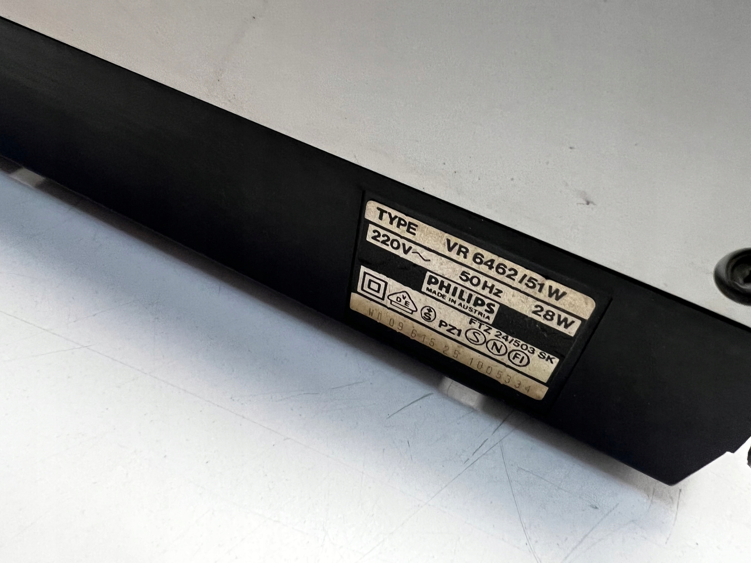 Старый старинный видеомагнитофон Philips, он включается, реагирует на каждую кнопку, но до сих пор у меня нет как проверить, не дает никаких гарантий, так как у меня нет, как проверить. Из центра выпала маленькая пластмасса. видно на фото. Он приклеен сверху.