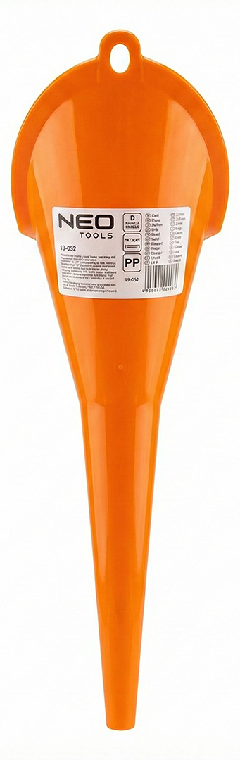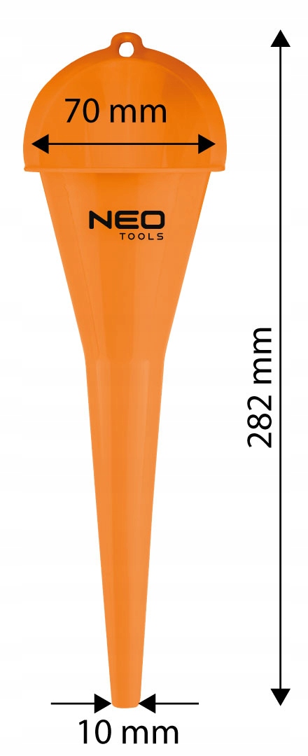 Lejek z długą szyjką 282 mm 11-557 marki NEO TOOLS przeznaczony jest do nalewania płynów w trudno dostępne miejsca. Produkt wykonany z polipropylenu, ma długość 282 mm oraz średnicę wlewki 76 mm. Stożkowy kształt lejka umożliwia dopasowanie do węższych i szerszych otworów, a długa i wąska szyjka ułatwia dostęp do głębiej umiejscowionych zbiorników lub wlewów - w tym do baków paliwa. Lejek NEO TOOLS wyposażony jest w uchwyt do powieszenia, ułatwiający jego przechowywanie. Narzędzie przeznaczone do nalewania olejów, płynów chłodniczych, płynów do spryskiwaczy oraz innych cieczy, zapewniając precyzyjne nalewanie i ograniczenie rozlewania podczas pracy.