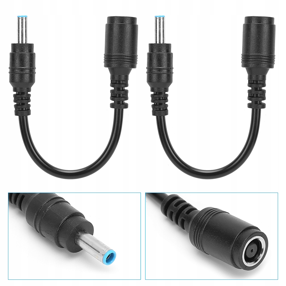 2 Sztuk Adapter Żeński Na Męski Czarny Do HP/Dell Prosty Na Kolanko 7.4 x 5.0mm Do 4.5 x 3.0mm