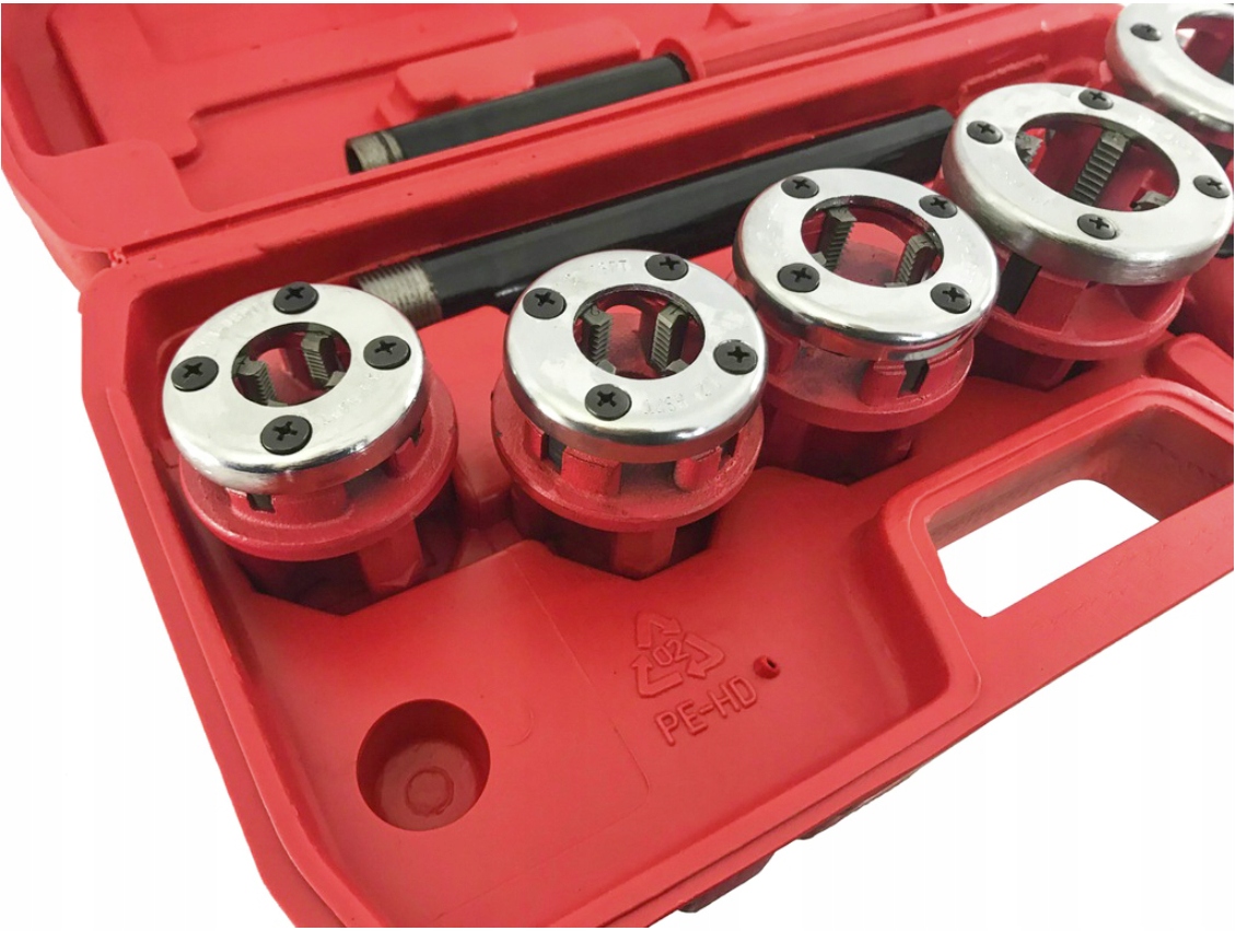 Gwintownica ręczna do nacinania gwintów rurowych, umożliwia wykonywanie zgodnych z normami, precyzyjnych połączeń gwintowanych, niezbędnych podczas prac remontowych, budowlanych i hydraulicznych. Wszystkie głowice gwintujące posiadają jednakowe mocowanie, natomiast prosty sposób montowania głowicy w pokrętle ze sprawnie pracującą zapadką umożliwia szybkie przełączanie kierunku gwintowania.