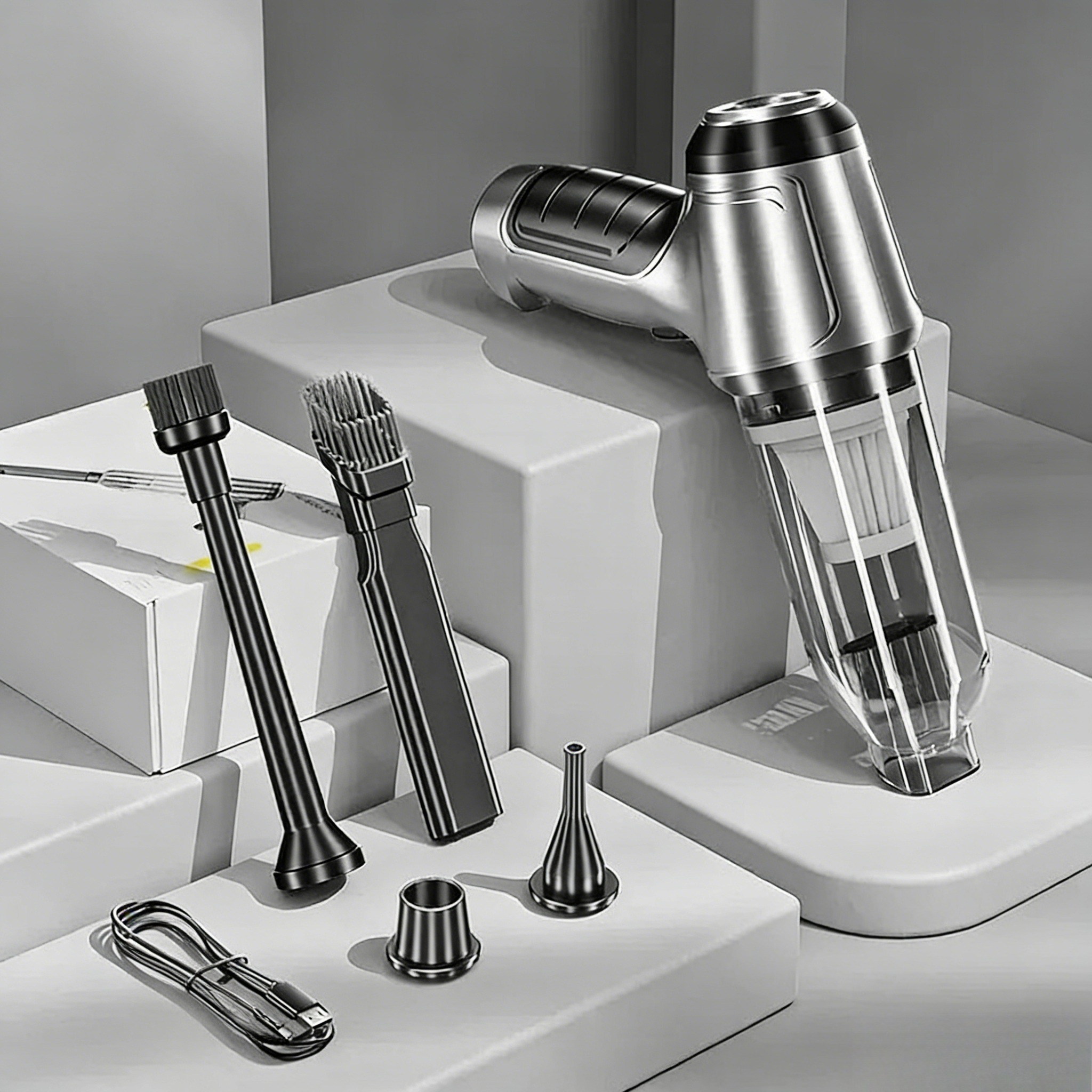 Zasilany baterią o pojemności 6000 mAh, ten ręczny akumulator próżniowy daje do 30 minut sprzątania — idealny do sprzątania na kempingach, podczas długich przejażdżek lub podczas parkowania na świeżym powietrzu. Wygodne ładowanie USB-C pozwala naładować próżnię samochodową przenośną bezprzewodową w samochodzie, power banku lub laptopie — prawdziwie mobilną i bezprzewodową