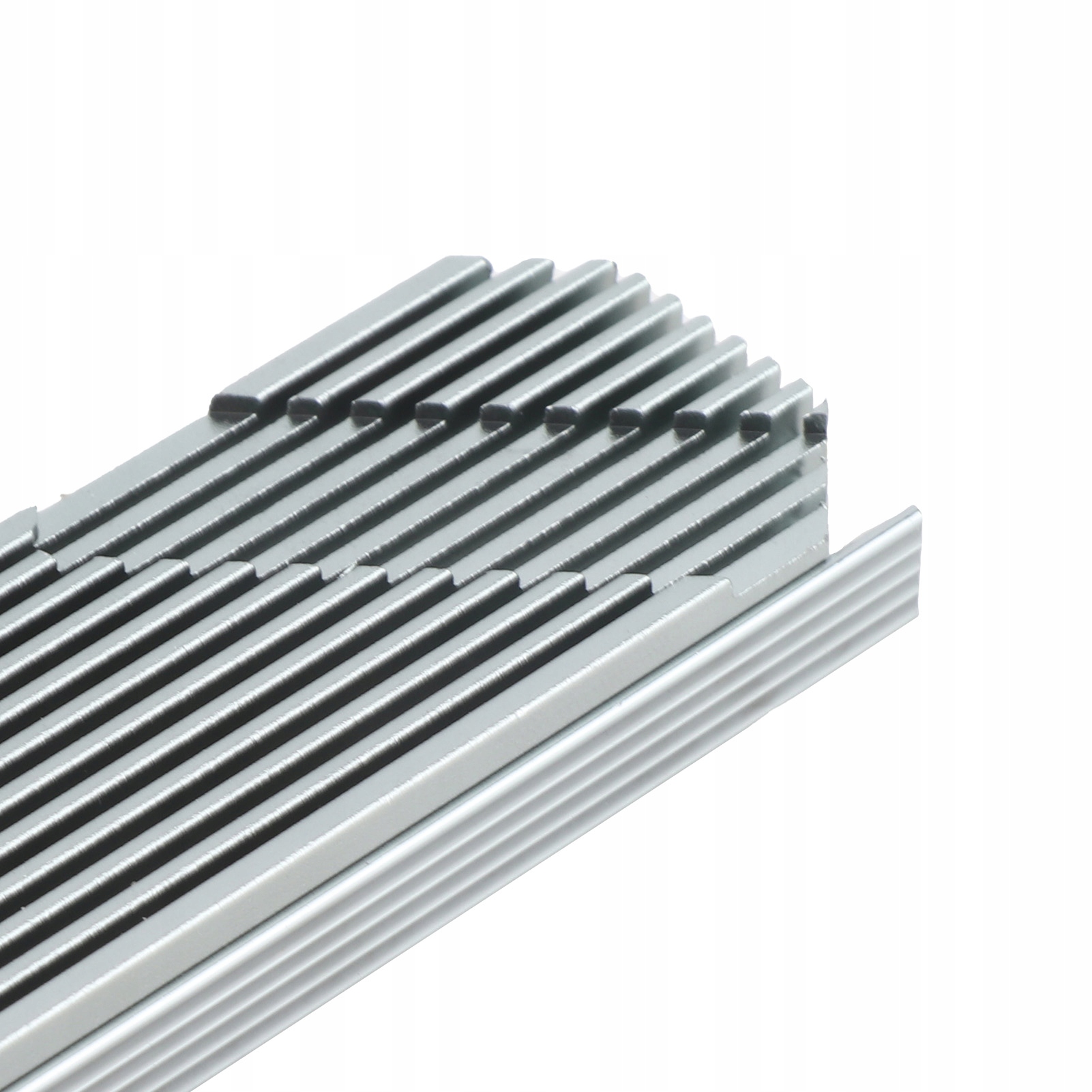 1、Anodowany stop aluminium: ten radiator SSD M.2 2280 przyjmuje anodowany materiał aluminiowy, z nachylonym pod kątem 45 stopni przewodzeniem ciepła, konstrukcja jest bardziej dopasowana do kanału powietrznego obudowy, tak szybko, jak to możliwe, aby jak najszybciej odebrać ciepło dysku SSD.