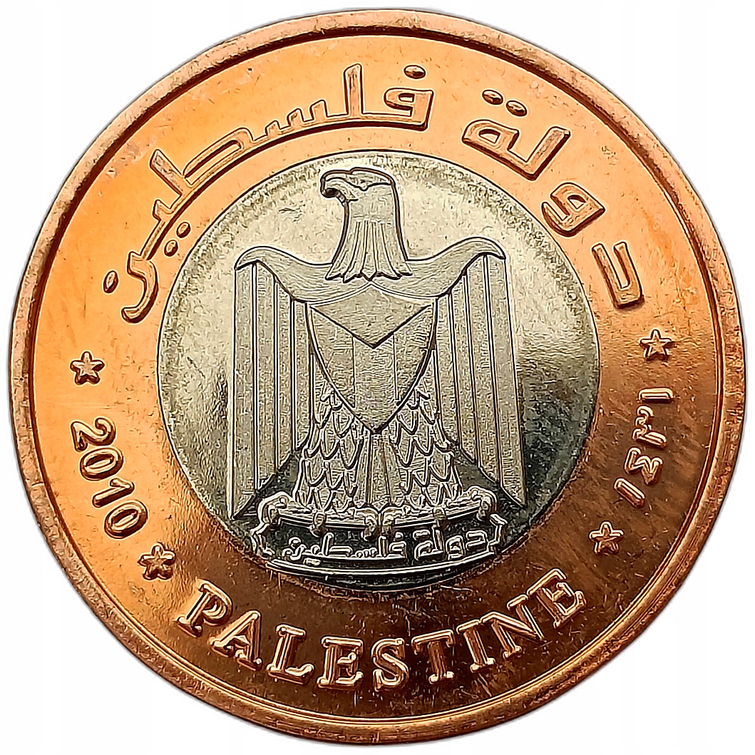 PALESTYNA 2 DINARS 2010 KOT PUSTYNNY BIMETAL MENNICZA
