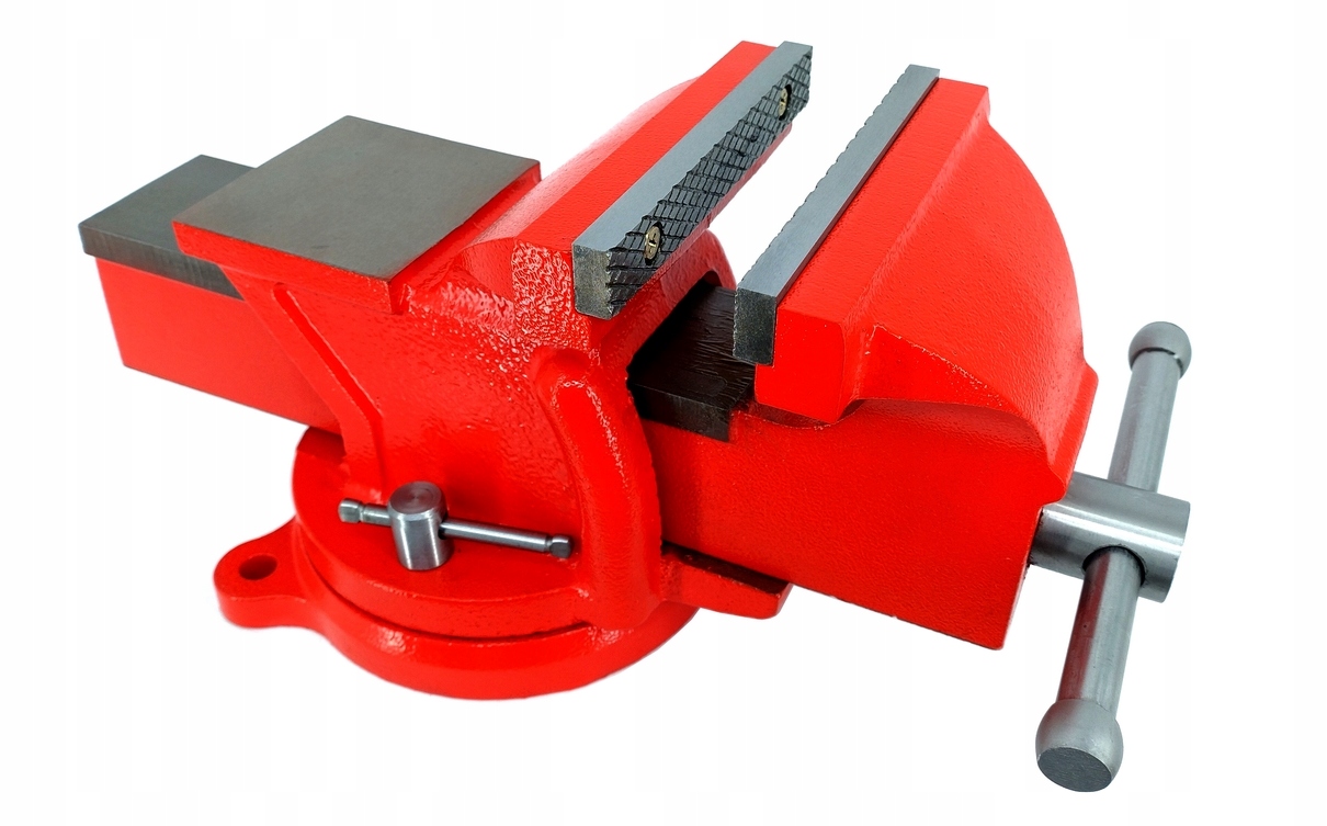 Model wyposażony jest w obrotową podstawę, która umożliwia wygodne ustawienie imadła pod odpowiednim kątem bez konieczności demontażu. Szerokość szczęk 150 mm sprawia, że jest to uniwersalny wybór zarówno do warsztatu domowego, jak i profesjonalnego stanowiska pracy. Maksymalny rozstaw szczęk 200 mm.