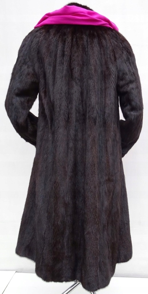 wymiary długość mierzona z tyłu od szwu wszycia kołnierza 115 cm, szerokość od pachy do pachy ok. 53 cm, biodra ok. 59 cm, rękaw od pachy 42 cm, całkowity obwód na samym dole ok. 160 cm