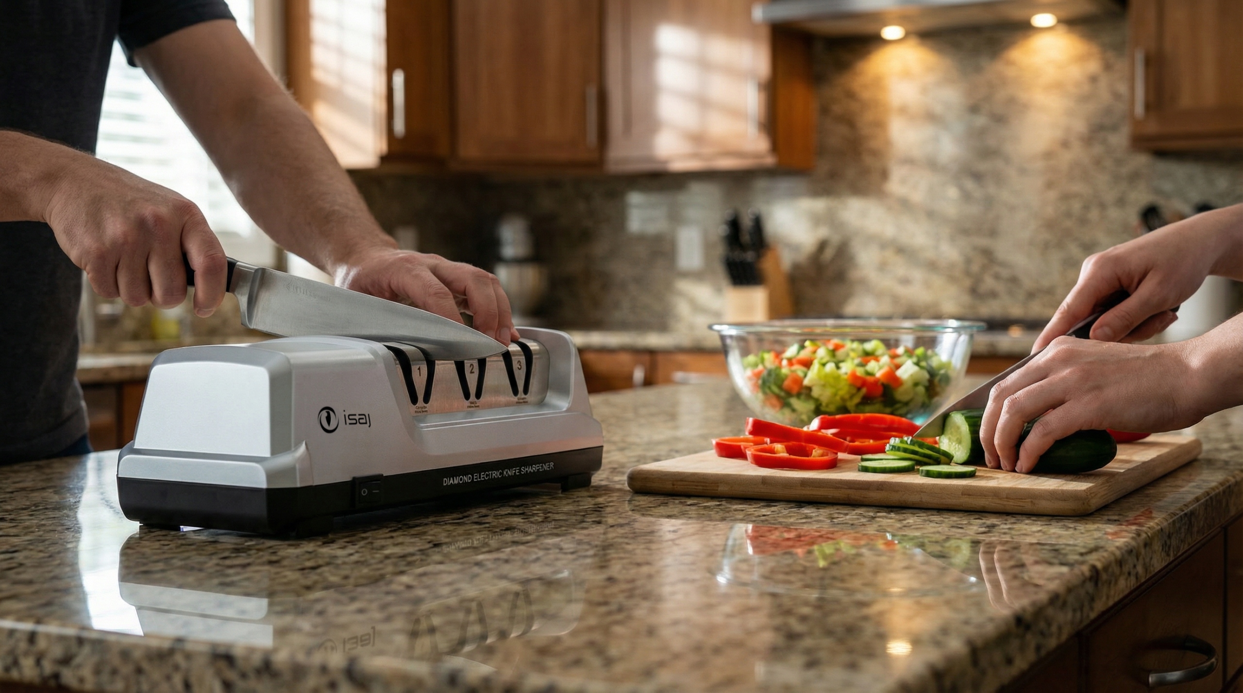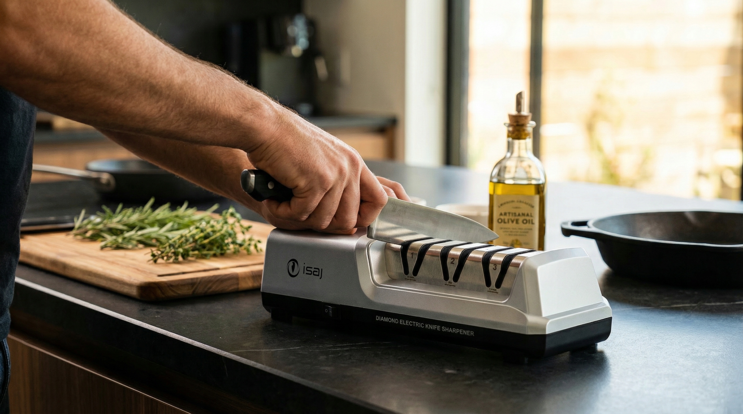ISAJ SHA1 to profesjonalna ostrzałka elektryczna stworzona dla osób, które nie uznają kompromisów w kuchni i oczekują perfekcyjnych efektów przy minimalnym wysiłku.