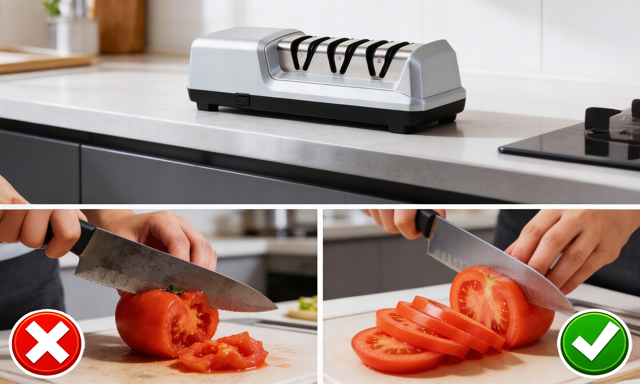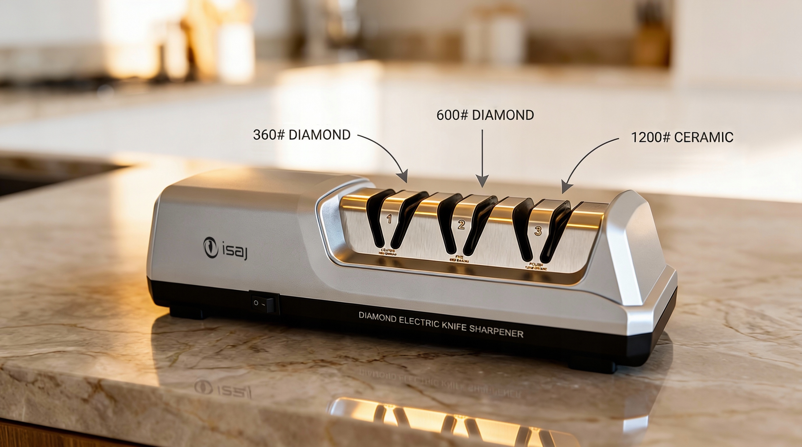 Wiele osób obawia się, że ostrzałka elektryczna może zbyt mocno ścierać stal i skracać żywotność noży. ISAJ SHA1 została zaprojektowana tak, aby całkowicie wyeliminować ten problem.