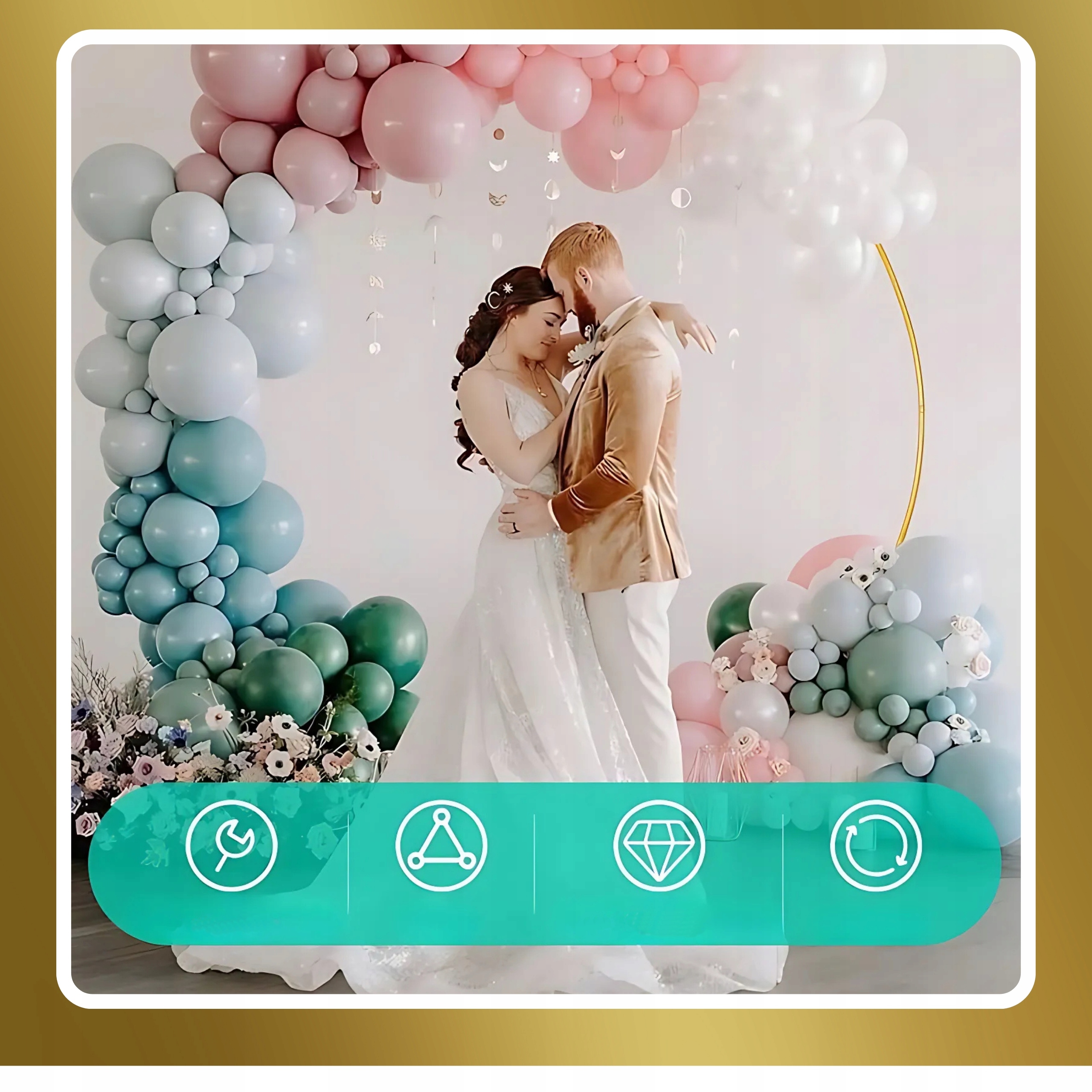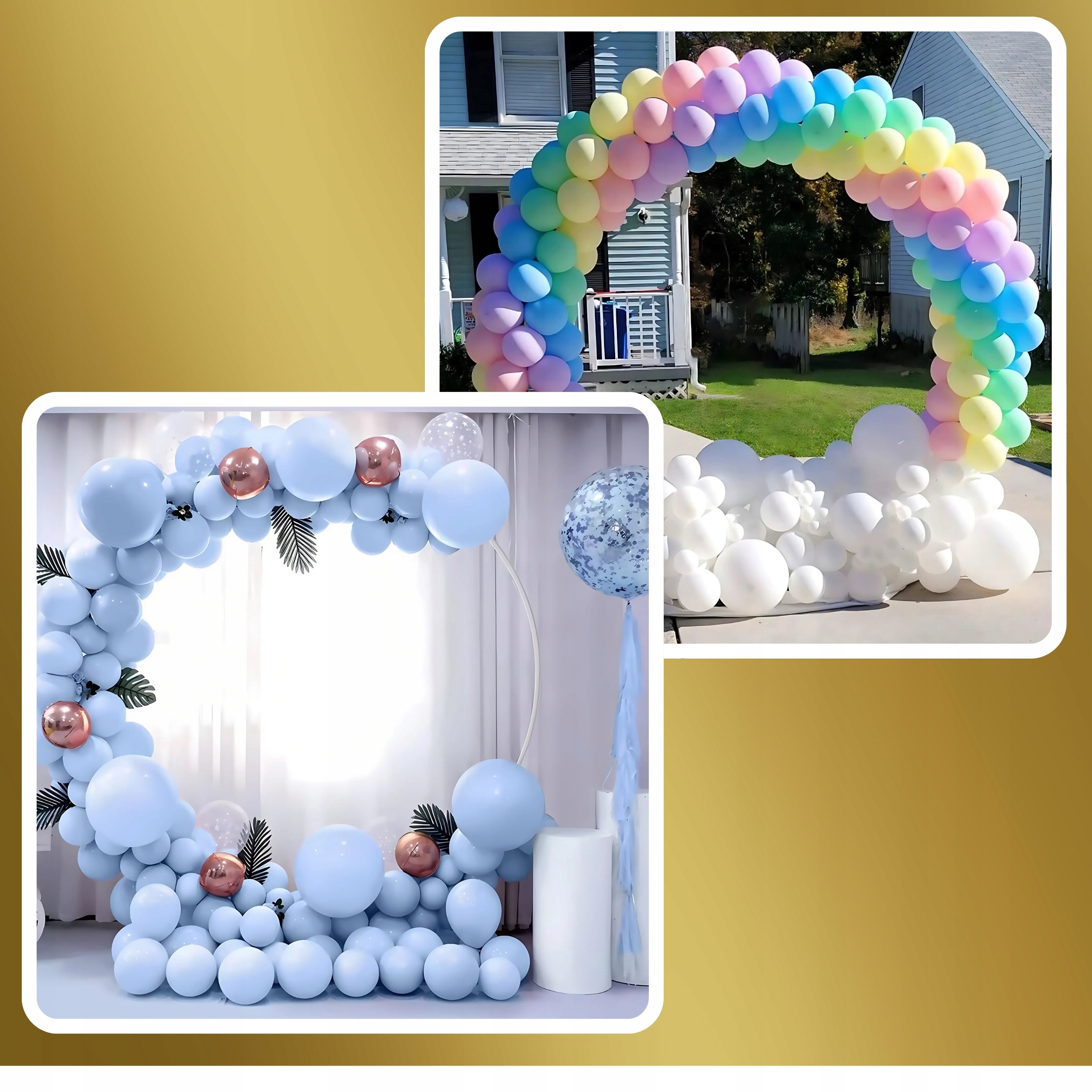 ⭐ Dodasz elegancji każdej imprezie – złote wykończenie pięknie komponuje się z balonami, kwiatami i innymi ozdobami.