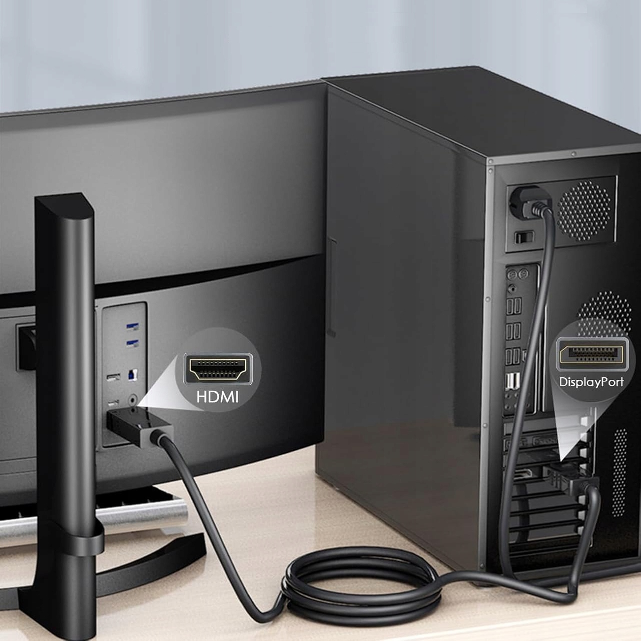 Kabel przesyła pełny cyfrowy sygnał, również dźwięk (jeśli urządzenie wysyła dźwięk poprzez DP).