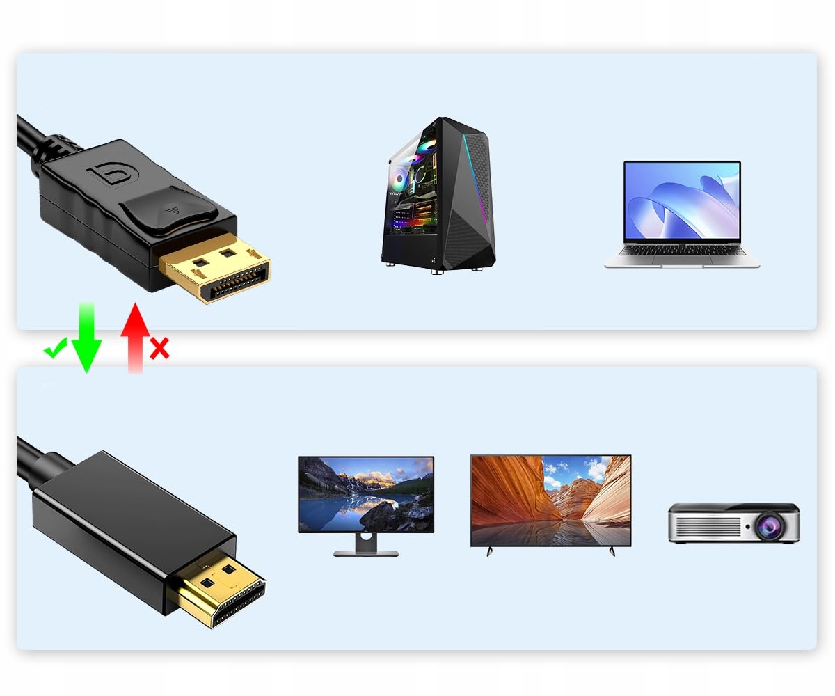 Kabel działa tylko w jedną stronę, z DISPLAYPORT na HDMI