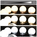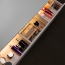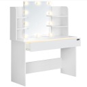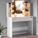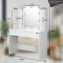Средства для укладки или духи могут быть выставлены на 4 полки. Благодаря плавно движущимся металлическим направляющим ящик легко открывается. Освещение ящика включается автоматически через датчик движения при его выдвижении. 10 светодиодов Светодиод можно затемнять на 10 уровнях и регулировать в 3 режимах освещения: теплый белый, натуральный белый и белый и подключите к источнику питания через USB-кабель. Легкие в уходе поверхности при загрязнении туалетный столик можно протереть мягкой влажной тканью.