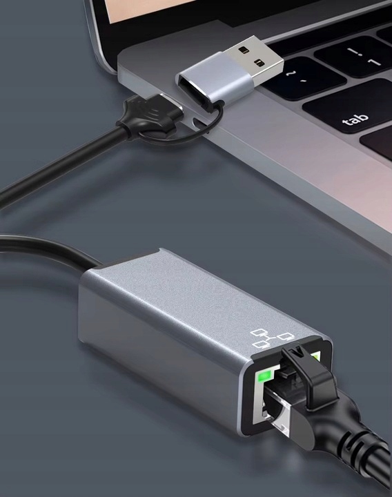 ✔️ Zamienia USB-C lub USB-A w Ethernet RJ45 Gigabit (10/100/1000 Mbps)