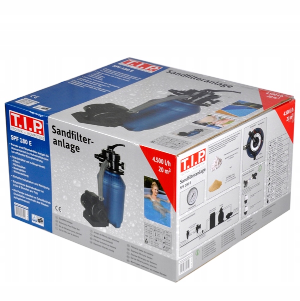 Filtr piaskowy z pompą SPF 180F umożliwia filtrację piaskową i pasuje do wszystkich basenów naziemnych o objętości do 20 m3.