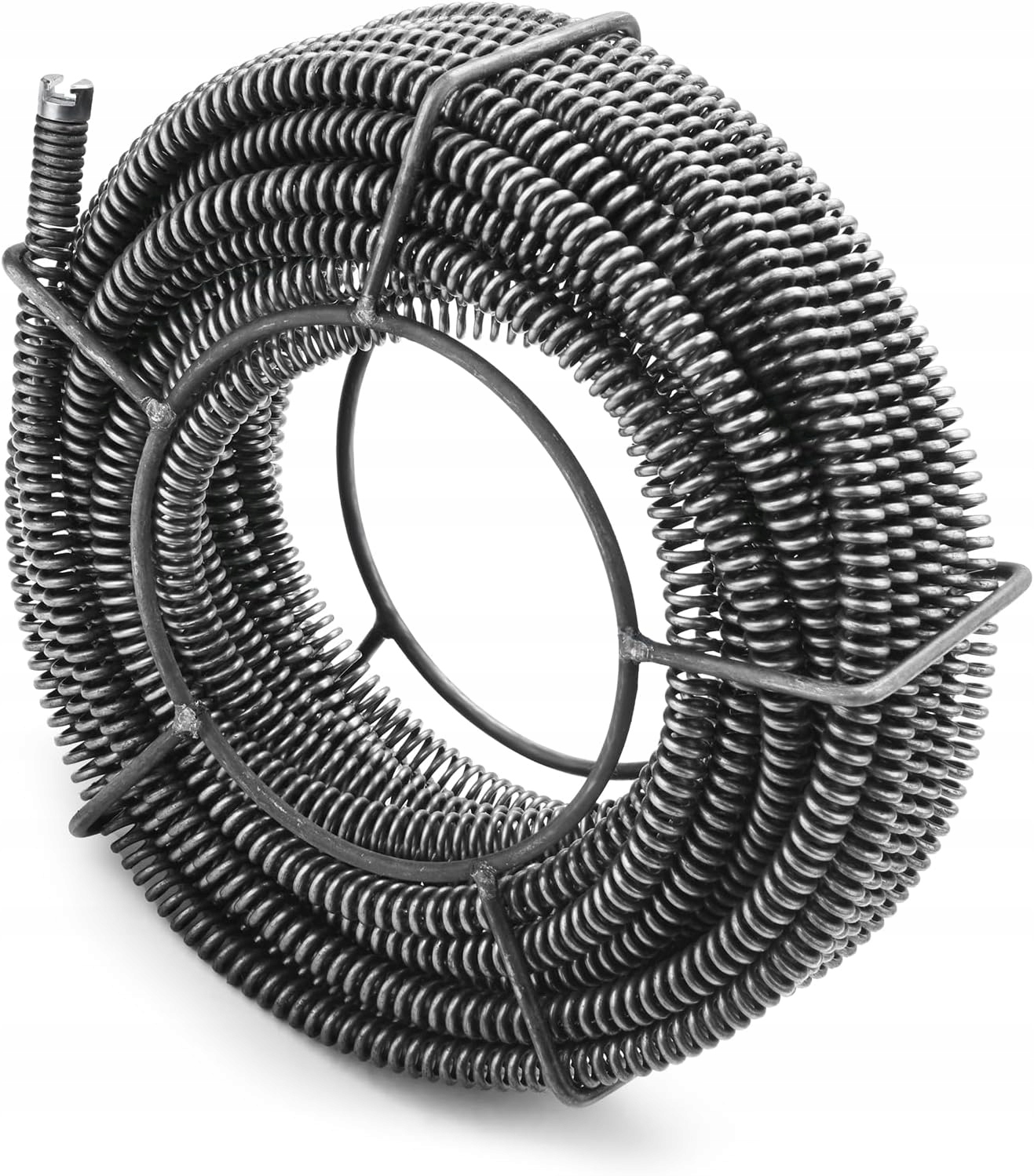 Poręczny i niezawodny zestaw łączonych elastycznych i mocnych sprężyn kanalizacyjnych nawiniętych w specjalny stalowy i mocny bęben.