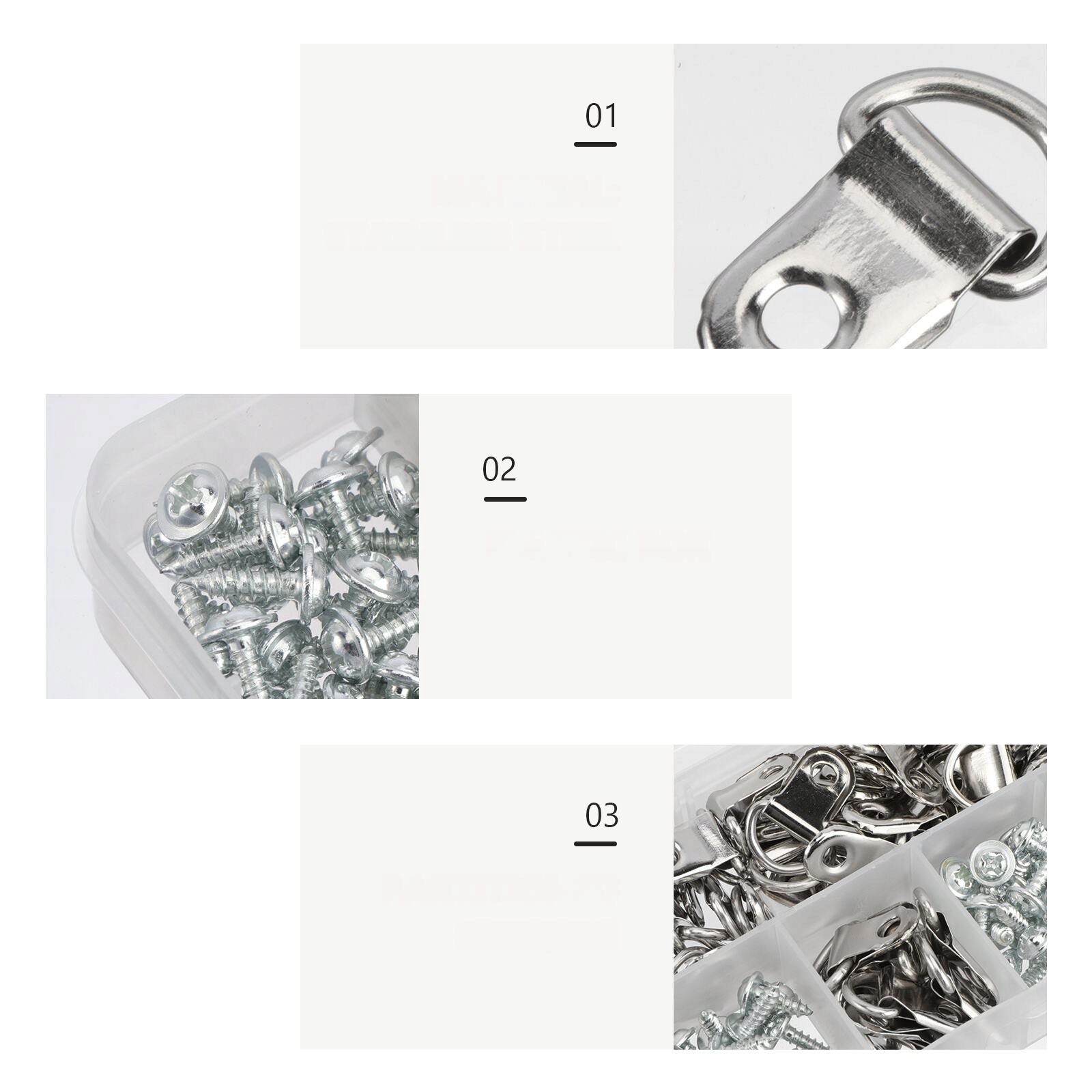 ✅80 x haczyki 80 x śruby 1 x plastikowe pudełko
