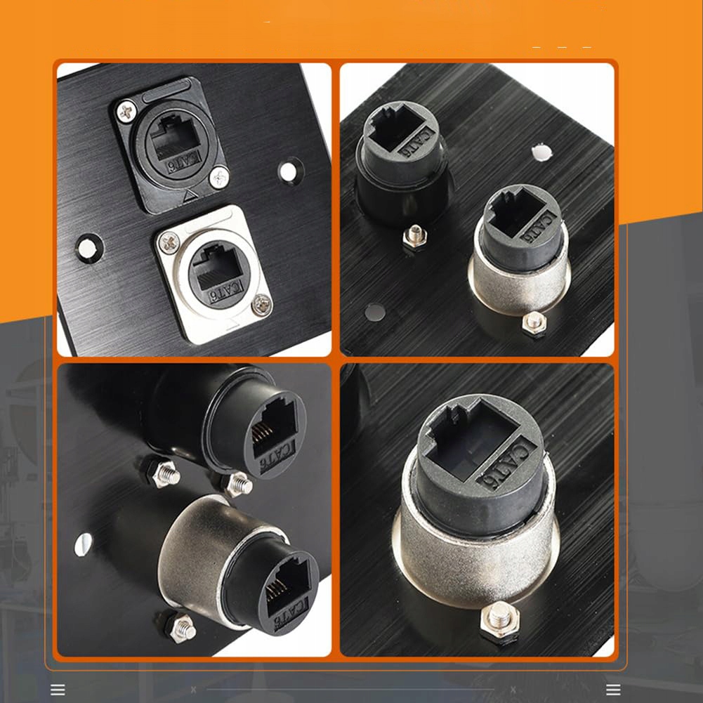 Standardowe złącze serii D do montażu panelowego, łącznik Ethernet RJ45 żeński-żeński do montażu w terenie, bez lutowania, bez narzędzi instalacyjnych. Dostosowany do różnych trudnych warunków środowiskowych, takich jak kwasy, zasady, utlenianie itp. Gwarantuje stabilność prądu.